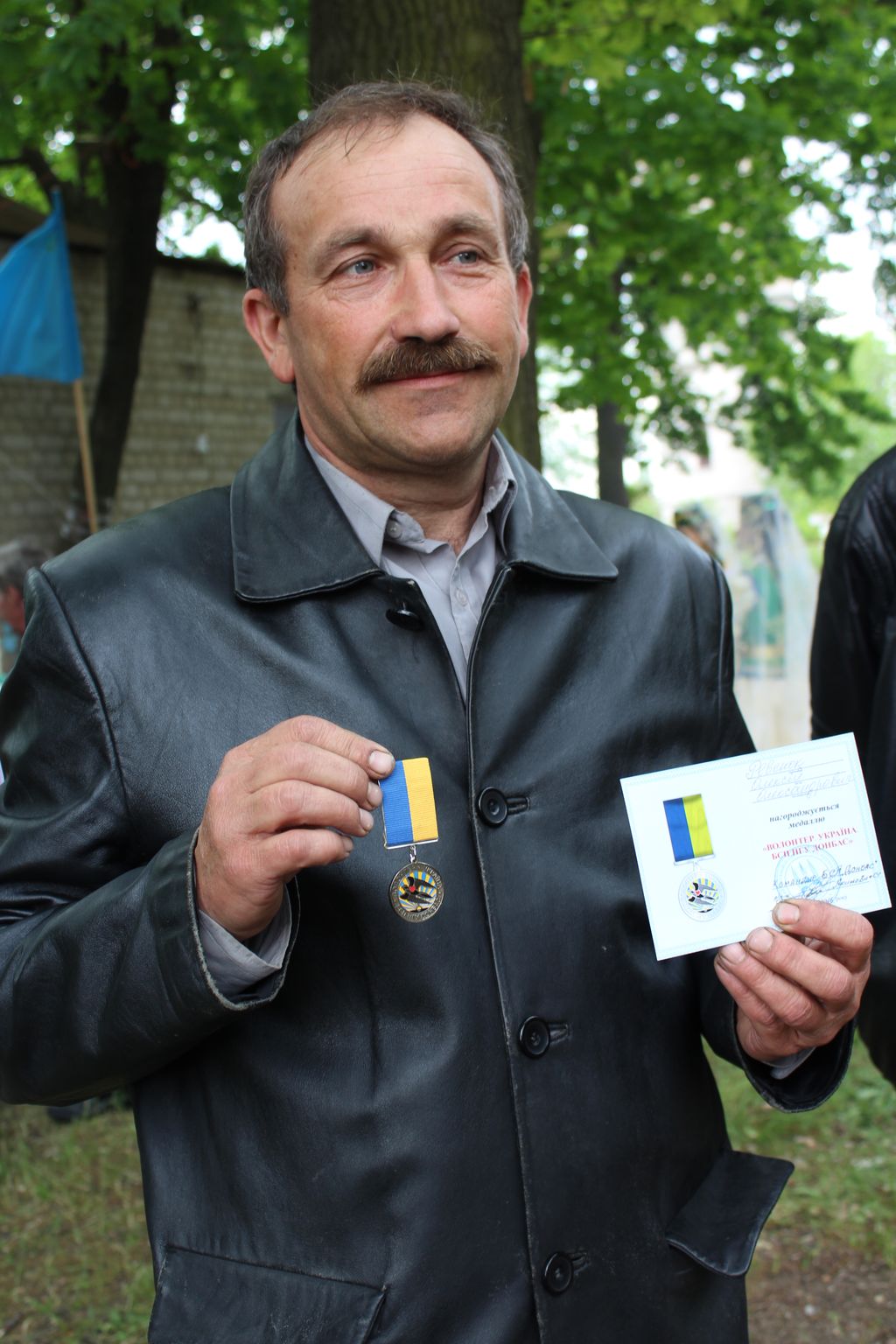 За бескорыстную помощь военнослужащим в зоне АТО и в частности бойцам батальона спецназначения Нацгвардии Украины "Донбасс" представителю ОО "Самооборона Мелитопольщины" Алексей Ревенок был награжден медалью "Волонтер. Україна. БСН НГУ "Донбас".