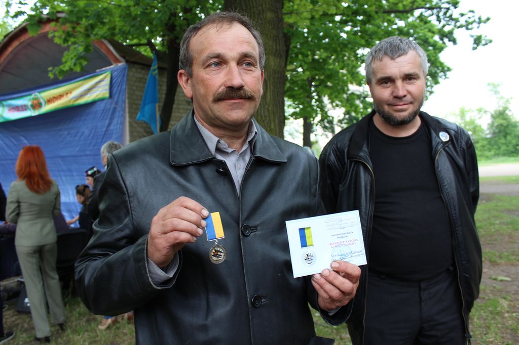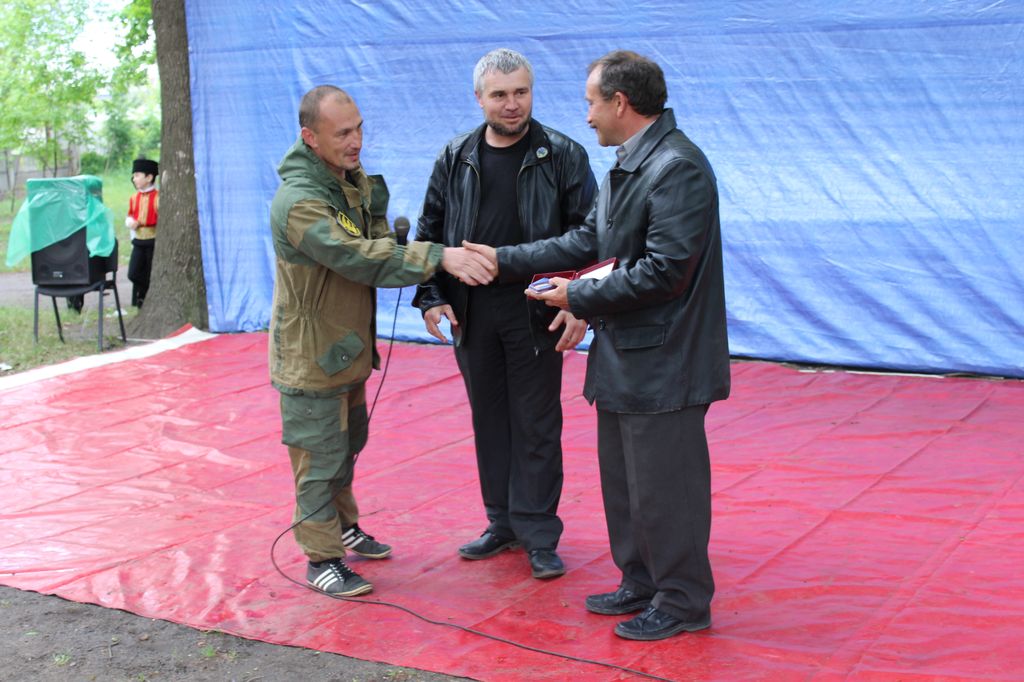 Бойцы батальона "Донбасс" вручили награду представителю общественной организации "Самооборона Мелитопольщины" Алексею Ревенку.