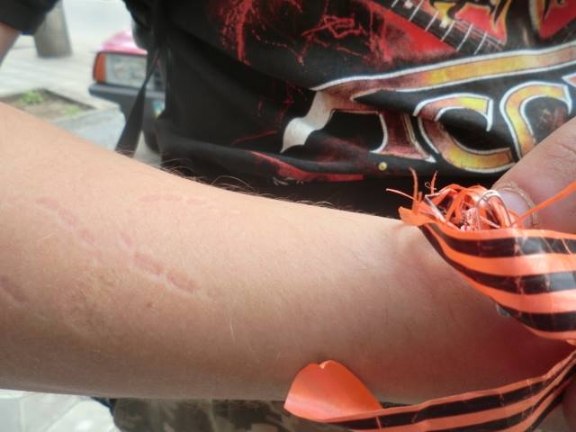 В соцсетях сообщают, что вчера, 9 мая, молодого человека, представителя "АЗОВа" покусали за то, что он сорвал "колорадскую" ленту с участника митинга.