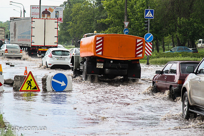 Сегодня, 10 мая в Запорожье идет сильный дождь, который уже отправил многие дороги под воду.