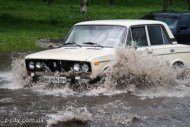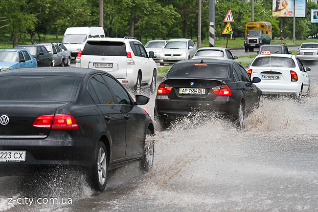 В Запорожье из-за ливня "поплыли" автомобили (фото, видео)