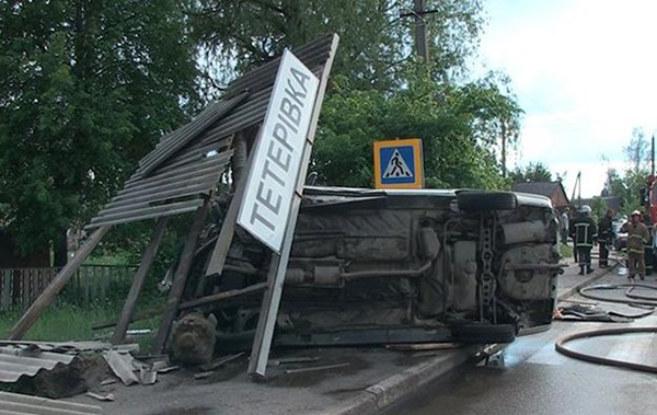 Под Житомиром женщина въехала в остановку с людьми (фото, видео)