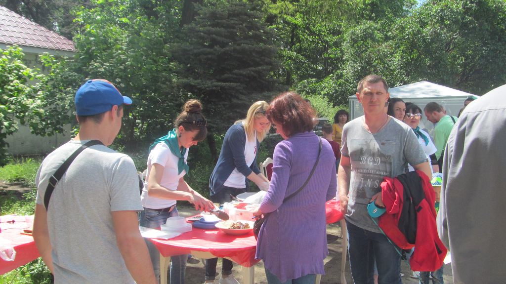 За небольшую, по сравнению с ресторанами, плату можно было приобрести шашлык, приправленный соусом и овощами. Все деньги от его продажи пойдут на приобретение питания для ВИЧ-позитивных детей.