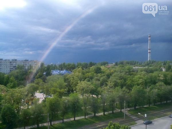 Жители Запорожья делятся в соцсетях фотографиями красивейшей радуги, что повисла над городом. Об этом передает 061.