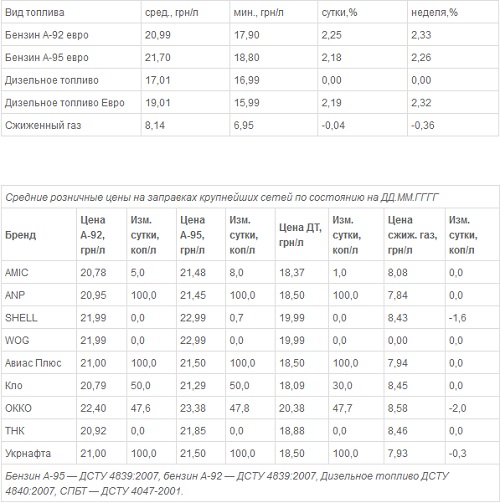 Дизельное топливо, соответствующее ДСТУ 3868-99, не изменилось в цене и составляет 17,01 грн/л а дизельное топливо евро подорожало на 2,19% (41 коп/л) до 19,01 грн/л.