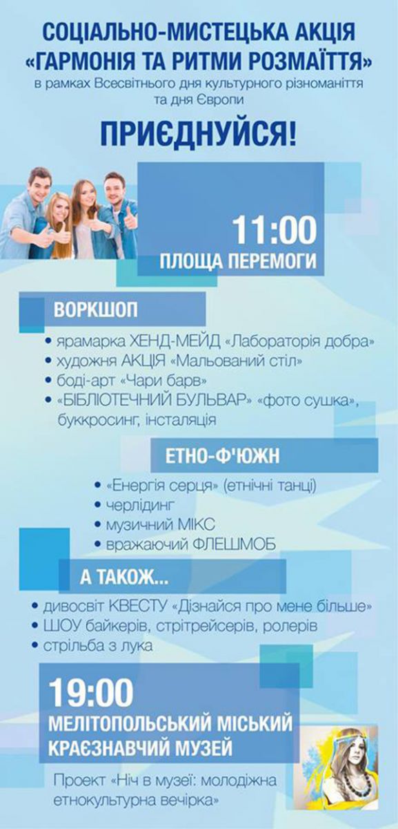 "Гармония и ритмы многообразия" - социально-творческая акция с таким названием пройдет в Мелитополе 21 мая.