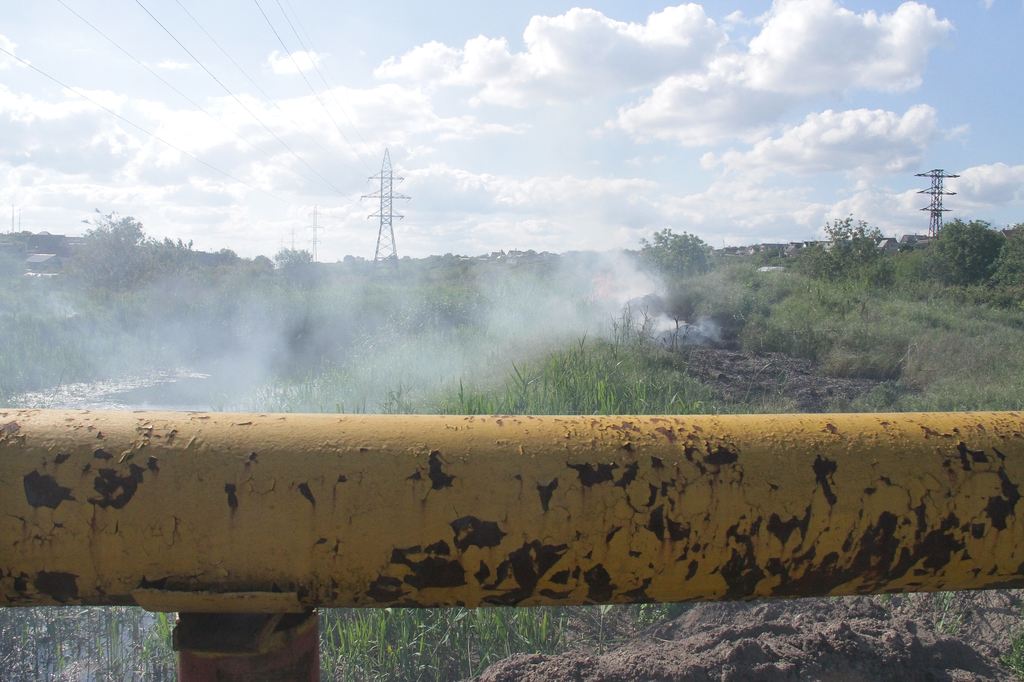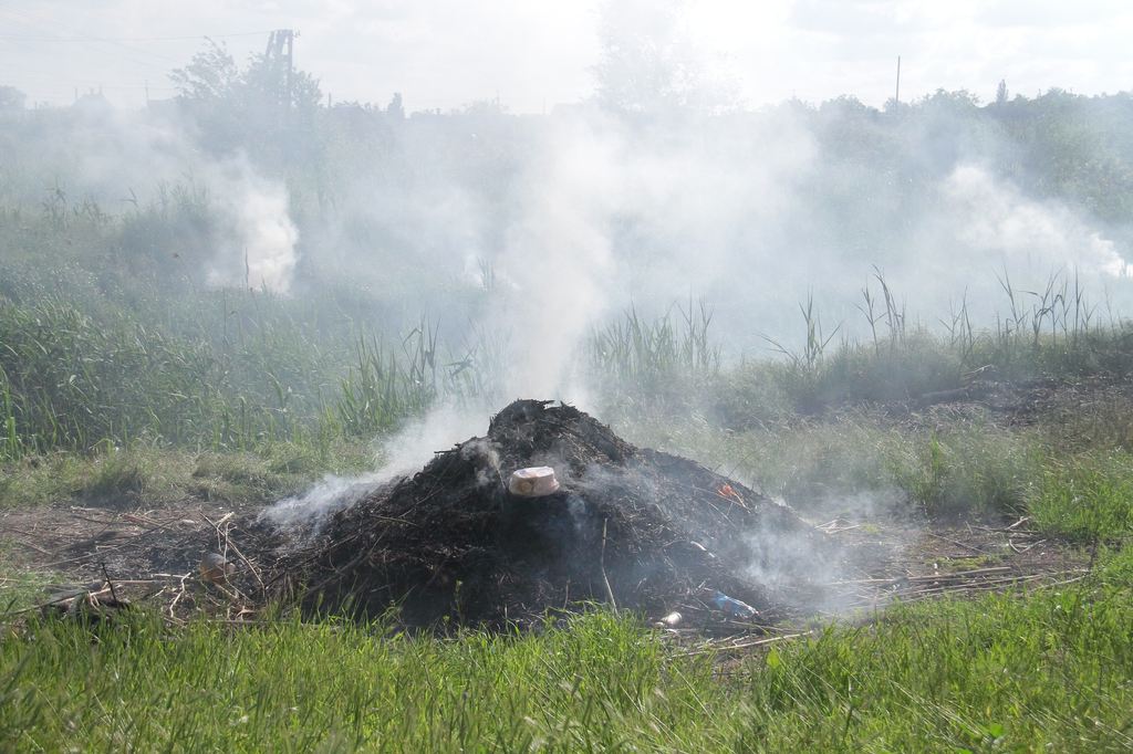 «Дымовая завеса» повисла над домами жителей ул. П. Сивицкого (бывш. Тельмана), расположенными рядом с ручьем Песчанским. Массово горит камыш, который накануне срезали в балке подрядчики из ЧП Белиева, нанятые городом для приведения в порядок балок.
