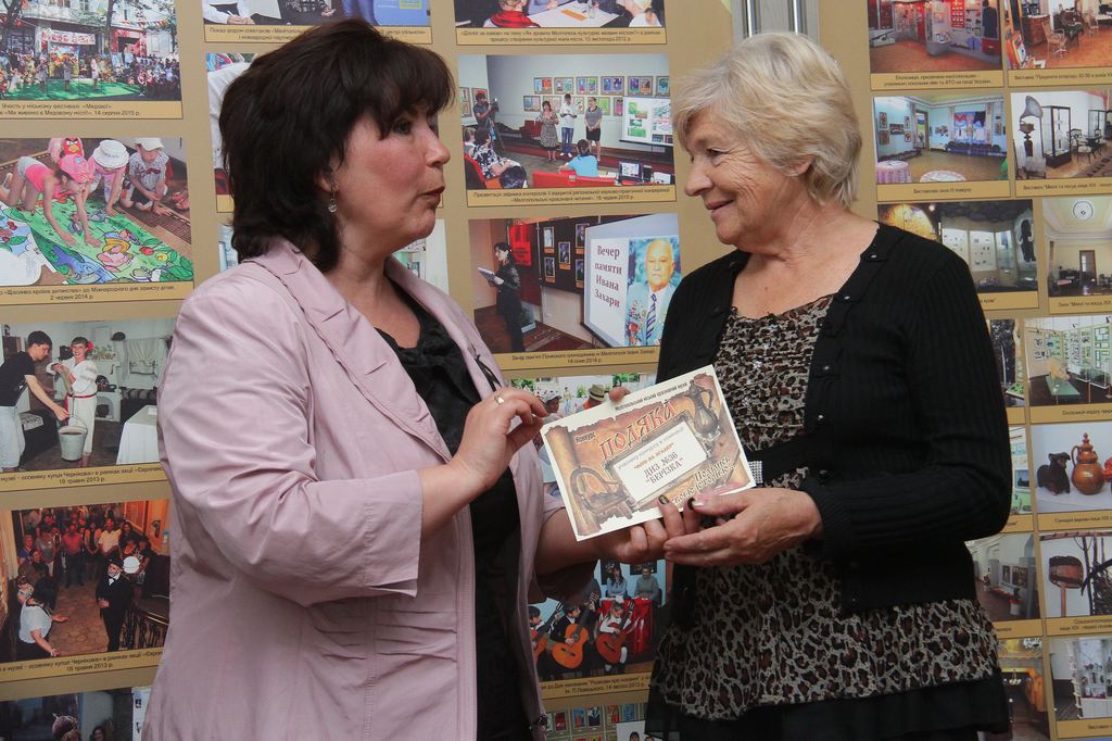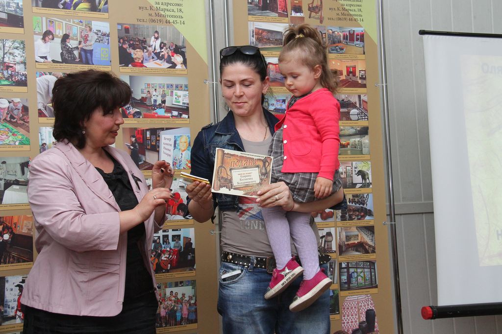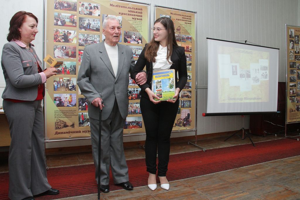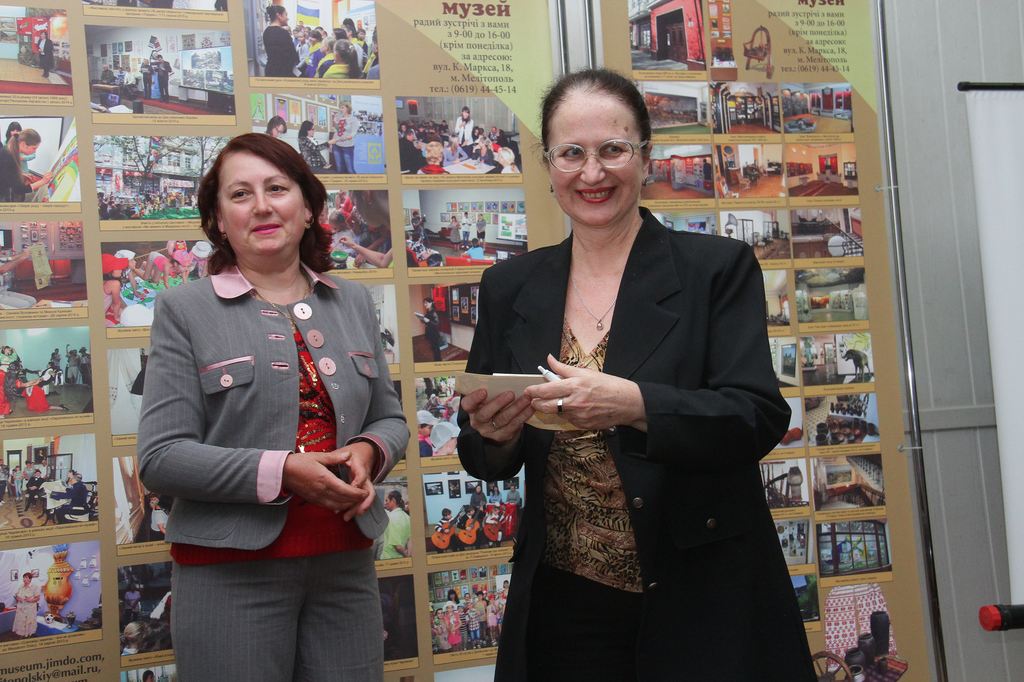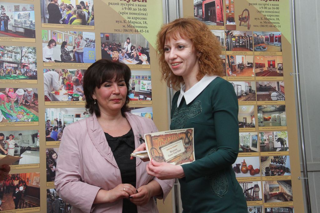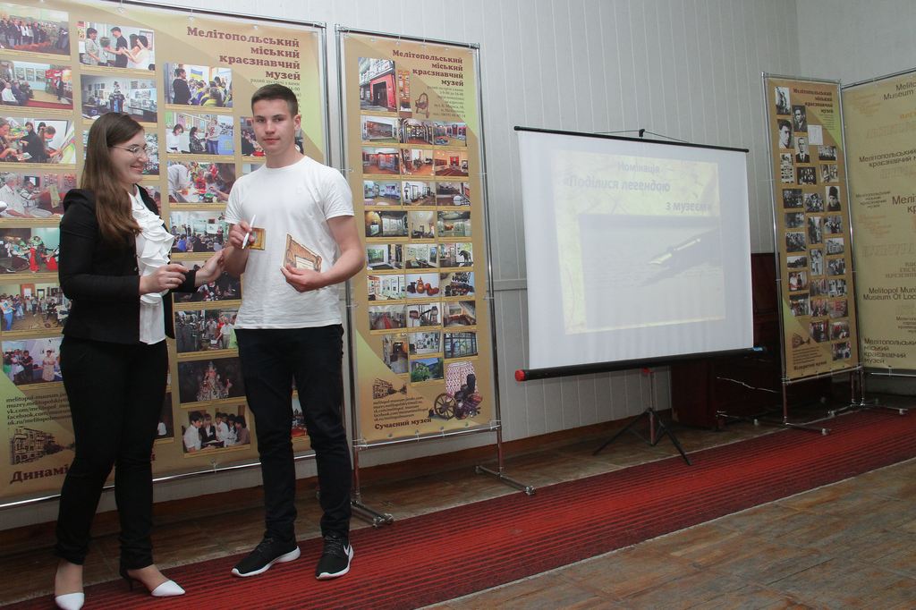 И награждение победителей конкурса, и перформанс были посвящены 95-летию Мелитопольского краеведческого музея и Международному дню музеев, который отмечается во всем мире с 1977 года. Как рассказали ведущие церемонии награждения, научные сотрудники музея Ольга Фомина и Роман Клочко, к 95-летию музея был объявлен конкурс "Поделись своей историей". Мелитопольцев приглашали поучаствовать в трех номинациях: "Фото на память", где нужно было предоставить музейщикам фото на фоне МКМ или его экспозиций; "Поделись легендой с музеем" - поделиться ранее неопубликованной легендой; "Экспонат - музею" - передать музею вещь обязательно с историей. Всего в конкурсе приняли участие 21 человек. Это люди разного возраста и профессий, причем, что радостно, большинство - дети и школьники. Все участники из рук директора музея Лейлы Ибрагимовой и хранителя фондов музея Галины Кучер получили в награду памятные призы, а победители и призеры - музейные издания и сертификаты на бесплатное посещение музея.