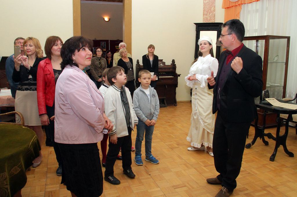 После награждения участники конкурса и гости музея отправились в необычную экскурсию по его залам. Необычную потому, что прямо на их глазах "оживали" музейные экспонаты: вот возле старинной фисгармонии учительница обучает свою ученицу, а вот кикимора музейная прячет от посетителей волшебную палочку, которой она заколдовала экскурсовода, и посетители, особенно детвора, с удовольствием разгадывают загадки, чтобы найти эту палочку; вот звучит голос всемирно известного ученого Тереножкина, который участвовал в раскопках скифского кургана на ул. Первомайской (сейчас ул. Скифской) в Мелитополе; с возгласами проносится по лестнице служанка, неся госпоже шляпку, присланную из Парижа, а сама госпожа заглядывает в гостиную к купцу Петру Черникову, читающему "свежий" дореволюционный номер газеты "Мелитопольские ведомости", а здесь прощаются солдат, уходящий на фронт, и его возлюбленная. Участники необычного исторического перформанса первыми заглянули в музейную лабораторию и стали свидетелями создания новой музейной экспозиции "Наш край от 16 века до 1917 года".