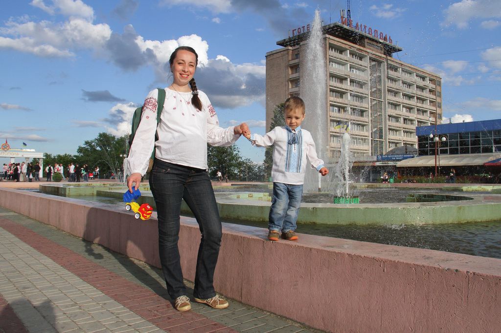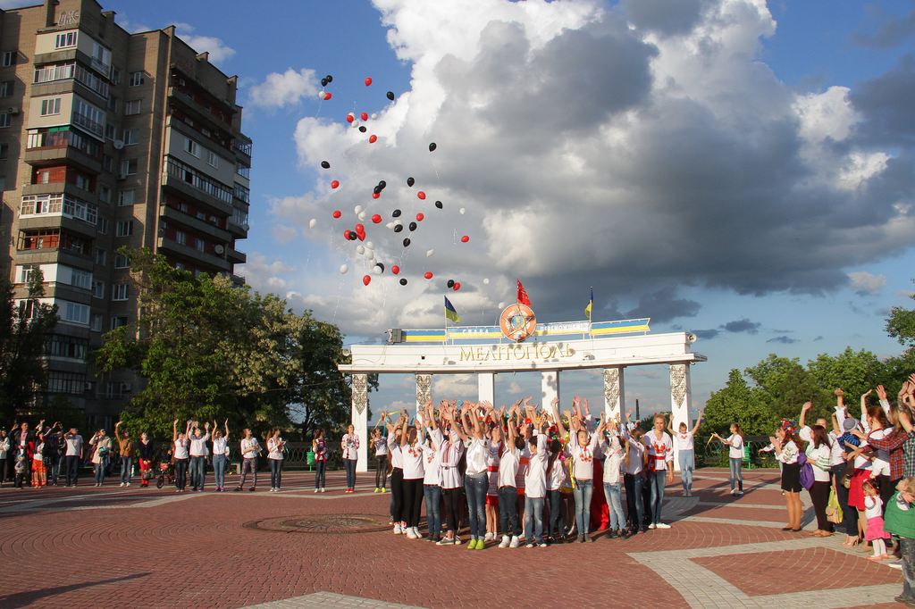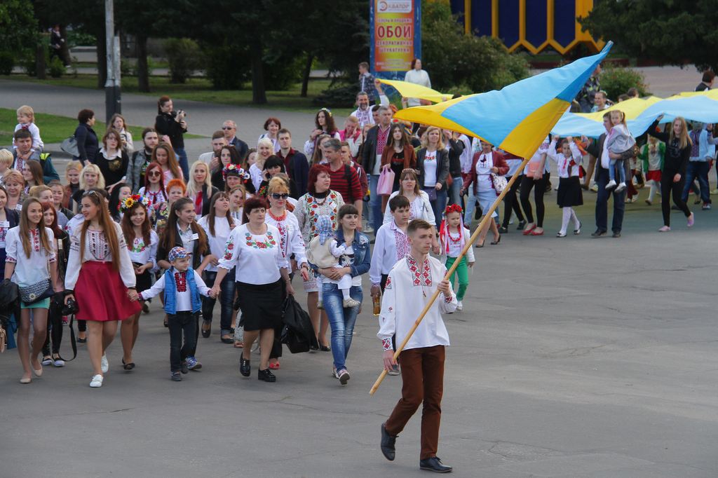 От парка культуры и отдыха им. М. Горького по центральному проспекту до площади Победы парадом прошли мелитопольцы разных возрастов, одетые в сорочки, вышитые украинским орнаментом.