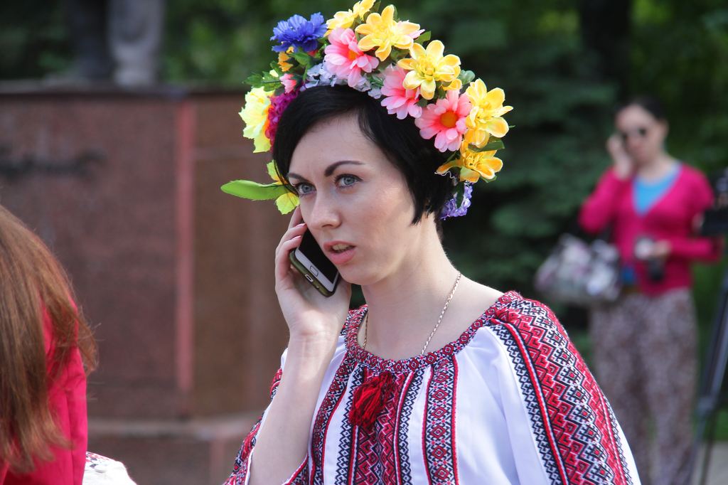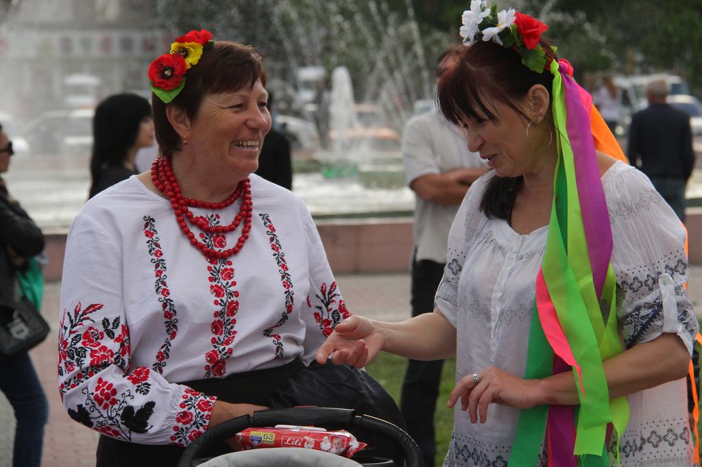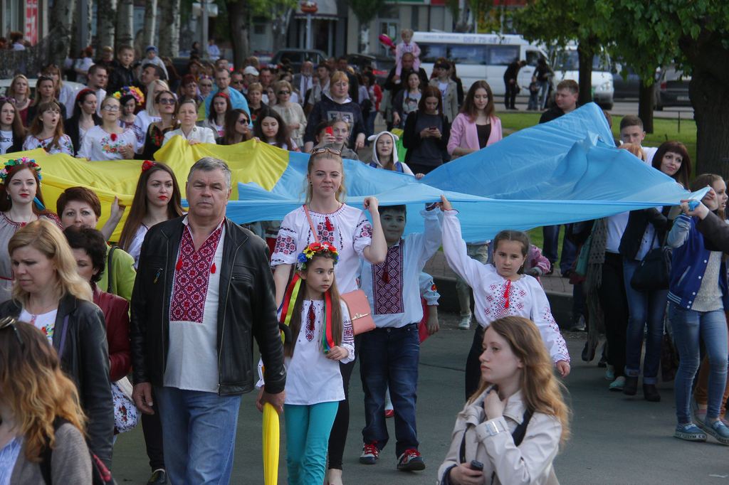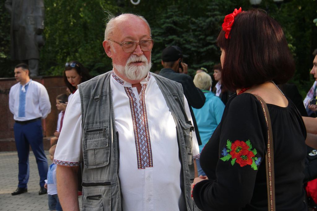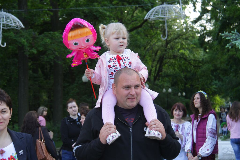 И в этом году в День вышиванки уже ближе к 18.00 возле центрального входа в парк культуры и отдыха им. Горького собралось большое количество горожан: парни, девушки, взрослые люди и совсем еще малыши, которых одели в вышиванки папы с мамами, пришли целыми семьями. Красивая колонна прошла от парка к площади Победы, где приняла участие во всеукраинском флэшмобе.
