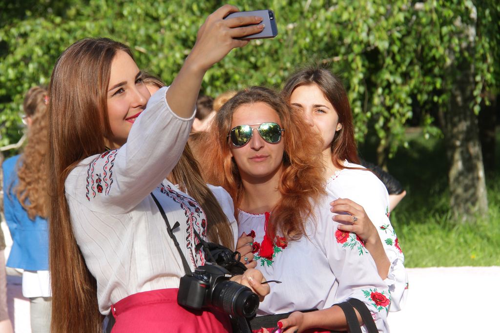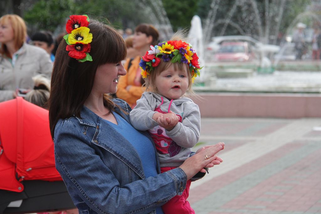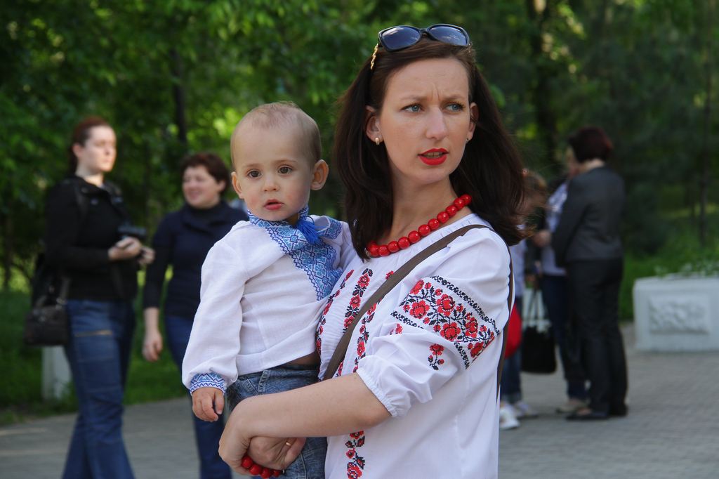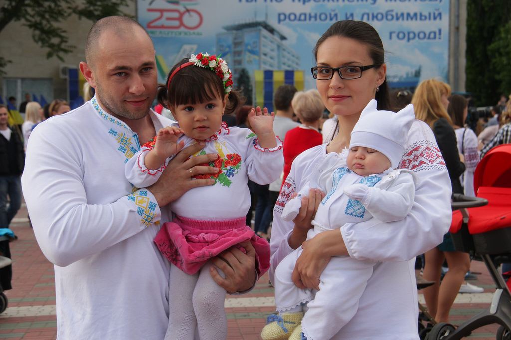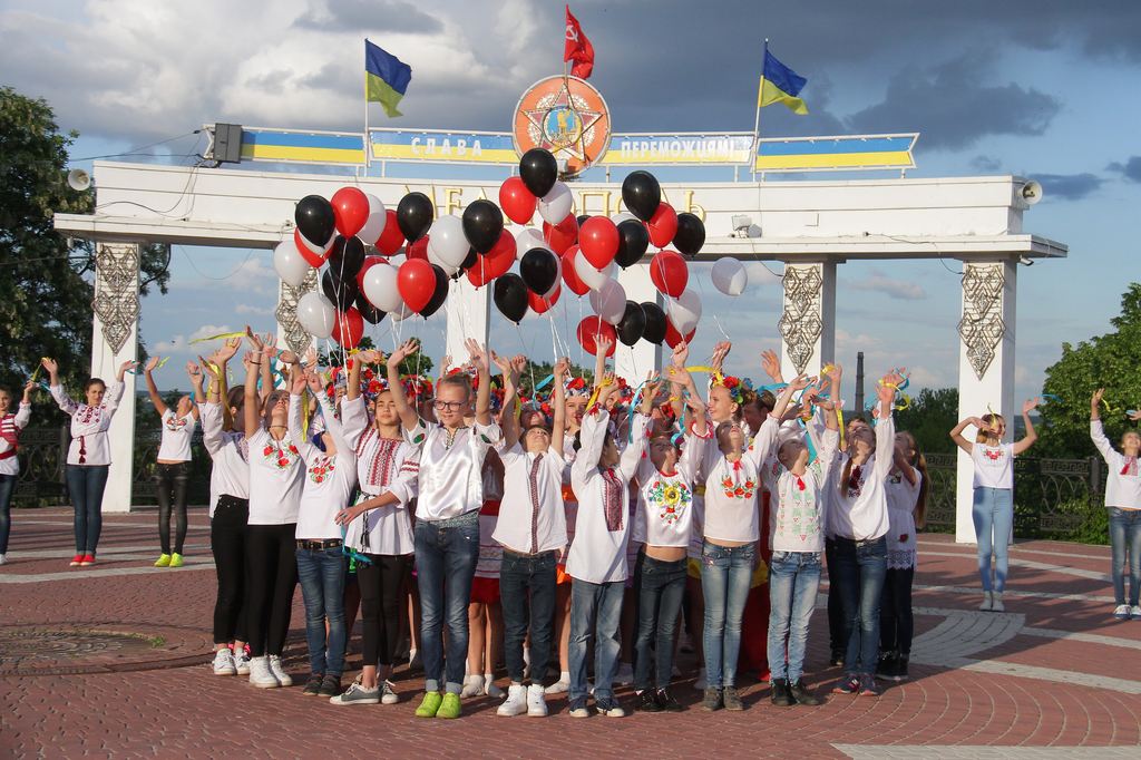 И в этом году в День вышиванки уже ближе к 18.00 возле центрального входа в парк культуры и отдыха им. Горького собралось большое количество горожан: парни, девушки, взрослые люди и совсем еще малыши, которых одели в вышиванки папы с мамами, пришли целыми семьями. Красивая колонна прошла от парка к площади Победы, где приняла участие во всеукраинском флэшмобе.