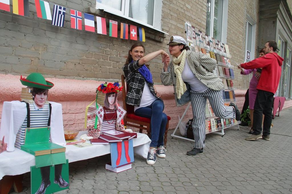 В ходе акции не было места скуке и праздному времяпрепровождению. Свернешь от остановки за угол, и тебя встречает "Библиотечный бульвар" - ЦБС и библиотека МГПУ объединились и организовали фотосушку "Путешествие по библиотекам Европы", книжные инсталляции, буккроссинг, где можно было принести свою книгу и взять с полки понравившуюся даже насовсем. В витринах центральной городской библиотеки им. М. Лермонтова - целых три панорамных экспозиции, рассказывающих о культуре и обычаях национальностей и народов, проживающих в Мелитополе. Многие мелитопольцы захотели сфотографироваться на память с Остапом Бендером - литературным героем, который разгуливал по "Библиотечному бульвару" и интересовался у прохожих: "А у вас в городе невесты есть?"
