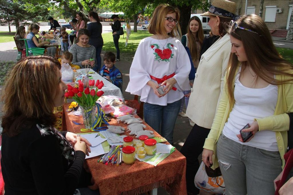 Студенты педуниверситета - люди кративные и творческие, умеющие своими руками сделать настоящие чудеса хенд-мейда. Они передали свои работы и поделки на ярмарку, все собранные деньги на которой будут направлены на нужды военнослужащих АТО. Здесь представлены вязаные крючком салфетки, плетеные вазы, букеты из цветов, сделанные из бумаги с сюрпризом-конфеткой внутри, картины из соленого теста, вышитые обереги и множество других приятных и веселых вещиц.