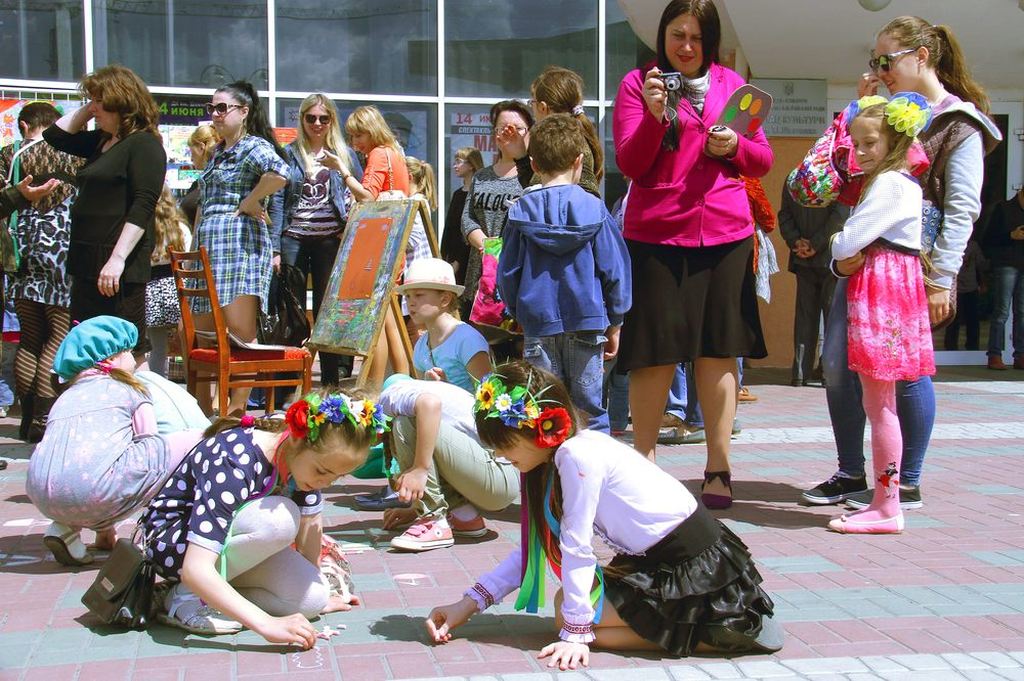 Показать богатство и разнообразие блюд национальных кухонь в рисунках предложили участникам акции педагоги Детской художественной школы. Малыши и дети повзрослее взялись с удовольствием рисовать как любимые лакомства, так и предметы сервировки стола, специи. Правда, среди чебуреков, борща, вареников, лонгмана, долмы и других блюд больше всего было нарисовано любимых детворой конфет, фруктов, соков, появился даже "молочный коктейль с клубникой". Как признается преподаватель ДХШ Татьяна Житник, они даже не ожидали такого большого количества желающих порисовать. Поэтому очень кстати пришлись коробки с мелками. А уж чистого места на асфальте хватило всем.
