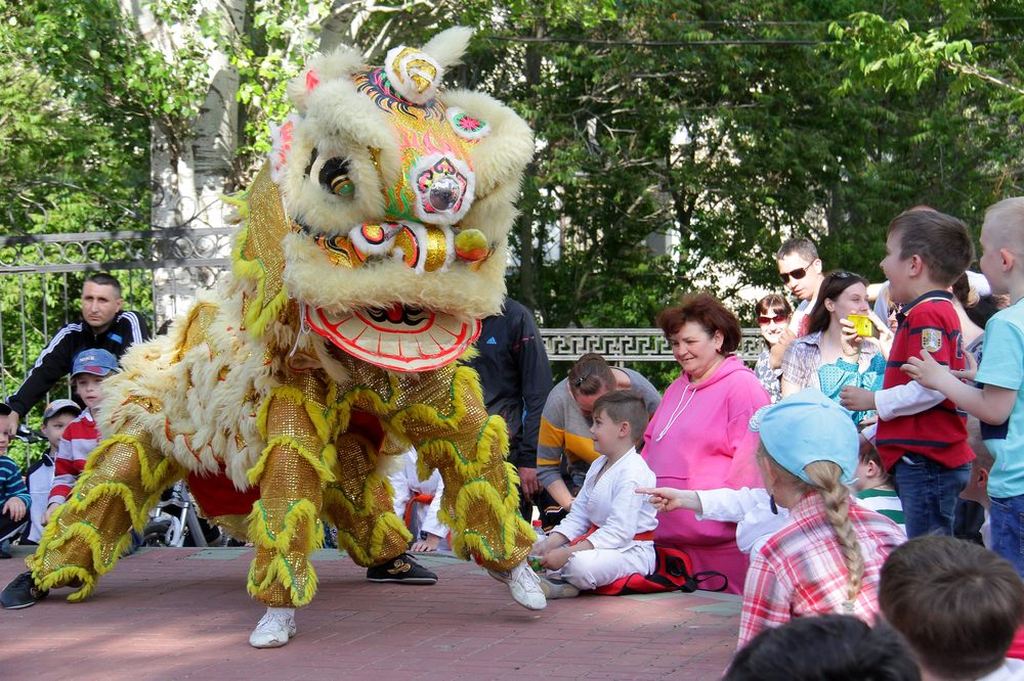 Завершился первый день фестиваля боевых искусств ярким танцевальным номером в исполнении спортсменов Запорожской федерации традиционного у-шу "Китайский тигр".