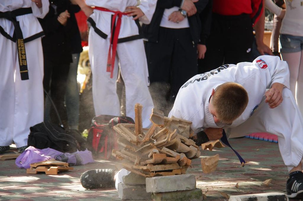 Под впечатлением от выступления мелитопольских киокушинкай каратистов, а особенно от показательных номеров обладателей черных поясов - тренеров и их гостей из Днепродзержинска, были все без исключения. Они разбивали ударом руки стопки черепицы, деревянные бруски легко ломались об их руки, ноги, торсы.