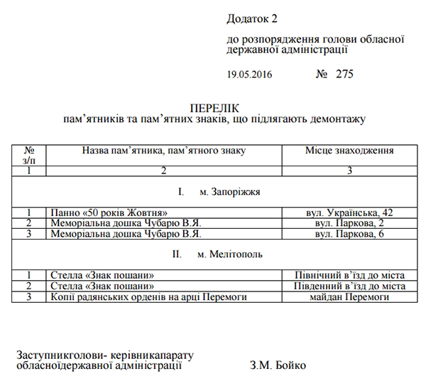 Кроме этого, глава области распорядился демонтировать «Знаки почета» на северном и южном въездах в город. Эта же судьба постигнет копии советских орденов на арке, что на Площади Победы.