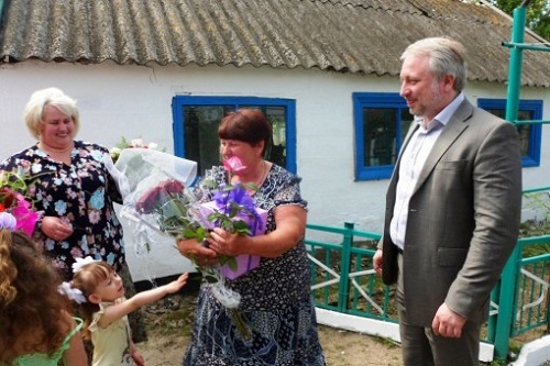 Вместе с Новопилиповским сельским головой Виктором Федорченко глава Мелитопольской райгосадминистрации Александр Мангул вручил нагрудный знак к почетному званию «Мать-героиня», подарки и фрукты.