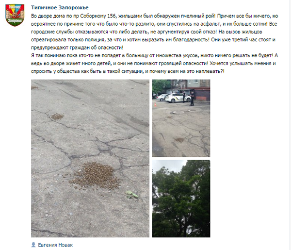 Запорожские патрульные выезжают и на необычные вызовы — предупреждать горожан об опасности, которую представляет собой рой пчел.