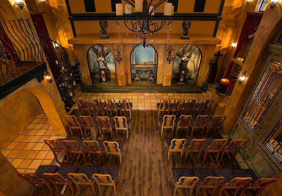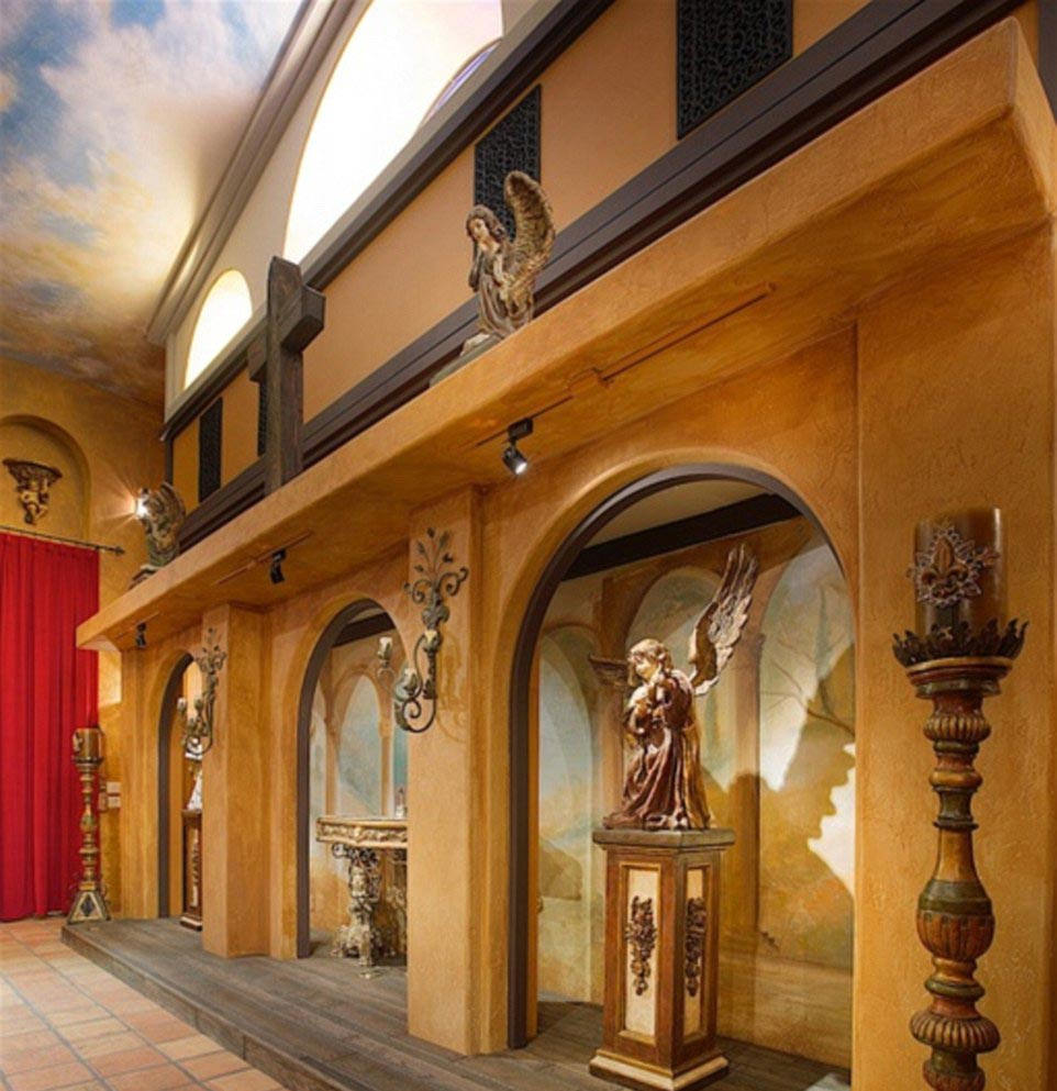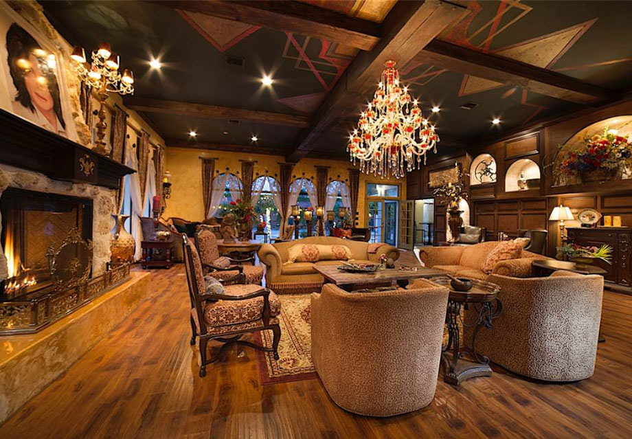 После преждевременной кончины короля поп-музыки, владелец этого шикарного дома решил превратить его в храм имени Майкла Джексона, воссоздав обстановку, лично выбранную музыкантом. В доме 7 спален, 12 ванных комнат, вышеупомянутая часовня в средневековом стиле, зона барбекю, винный погреб и другие удобства. Внутренний двор выложен натуральным камнем, а его главным украшением служит фонтан.
