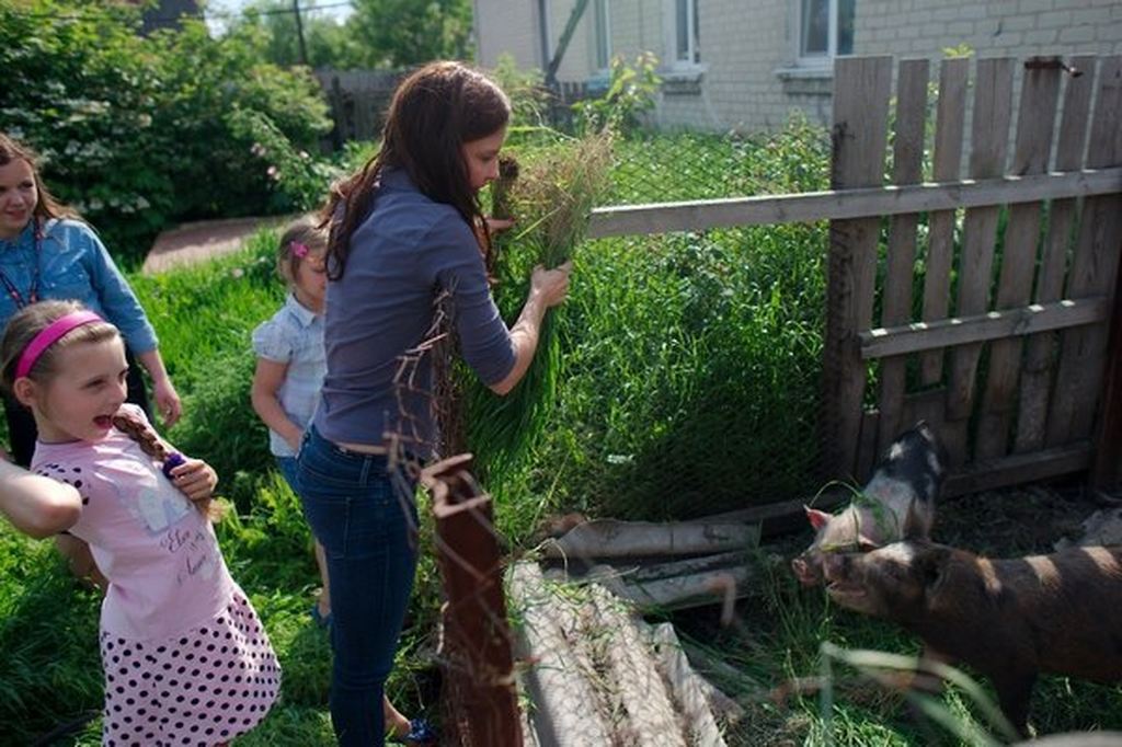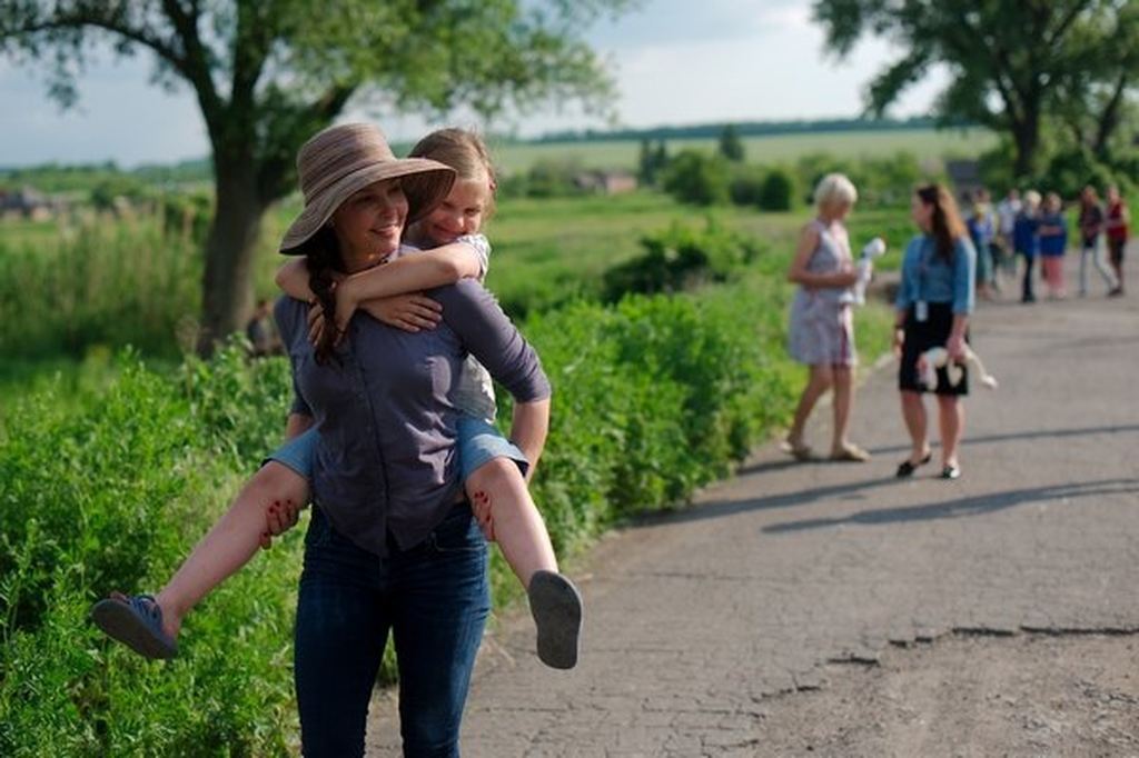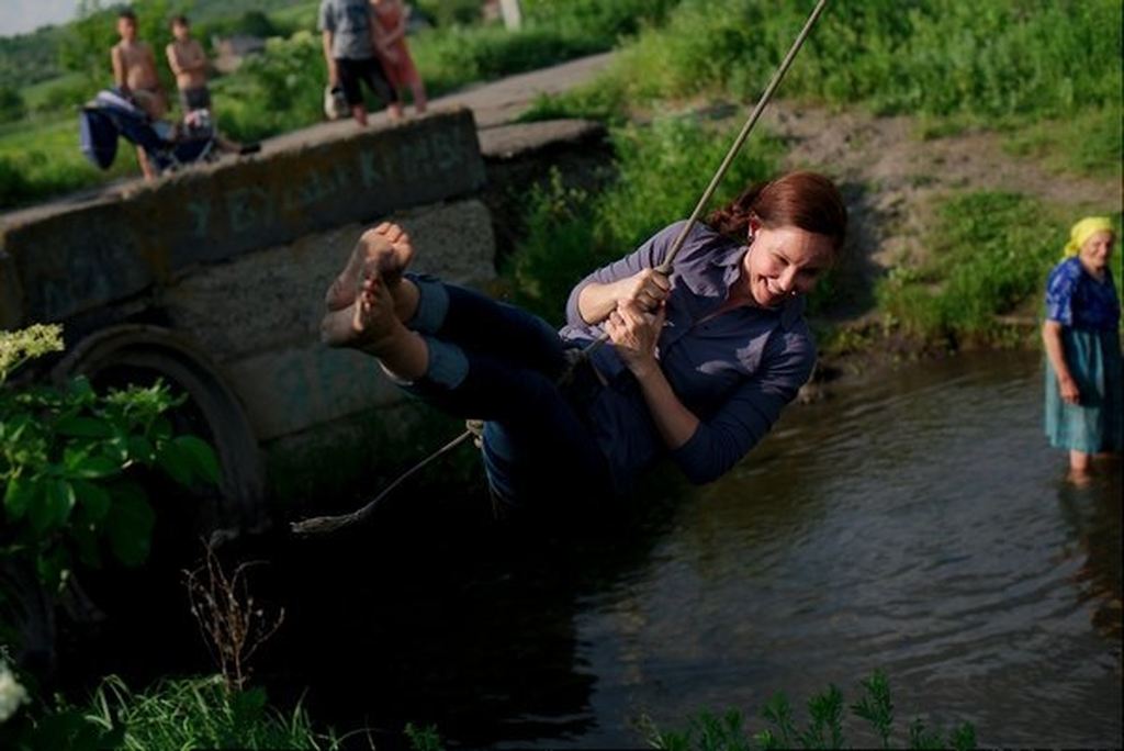 Актриса побывала Краматорске, Славянске и Святогорске, она посетила роддом, социальные центры и приюты для переселенцев, где познакомилась с женщинами, пострадавшими от конфликта.