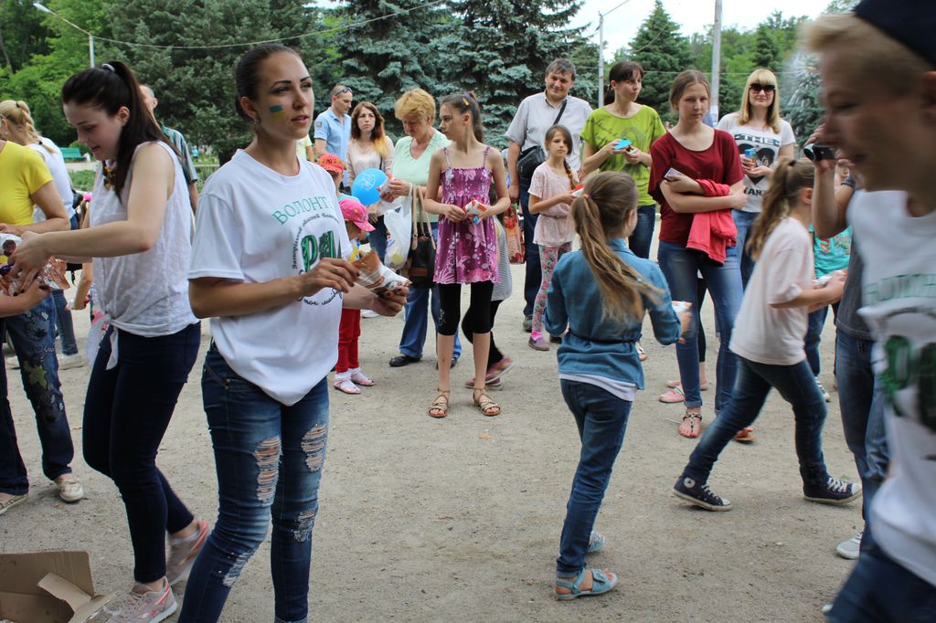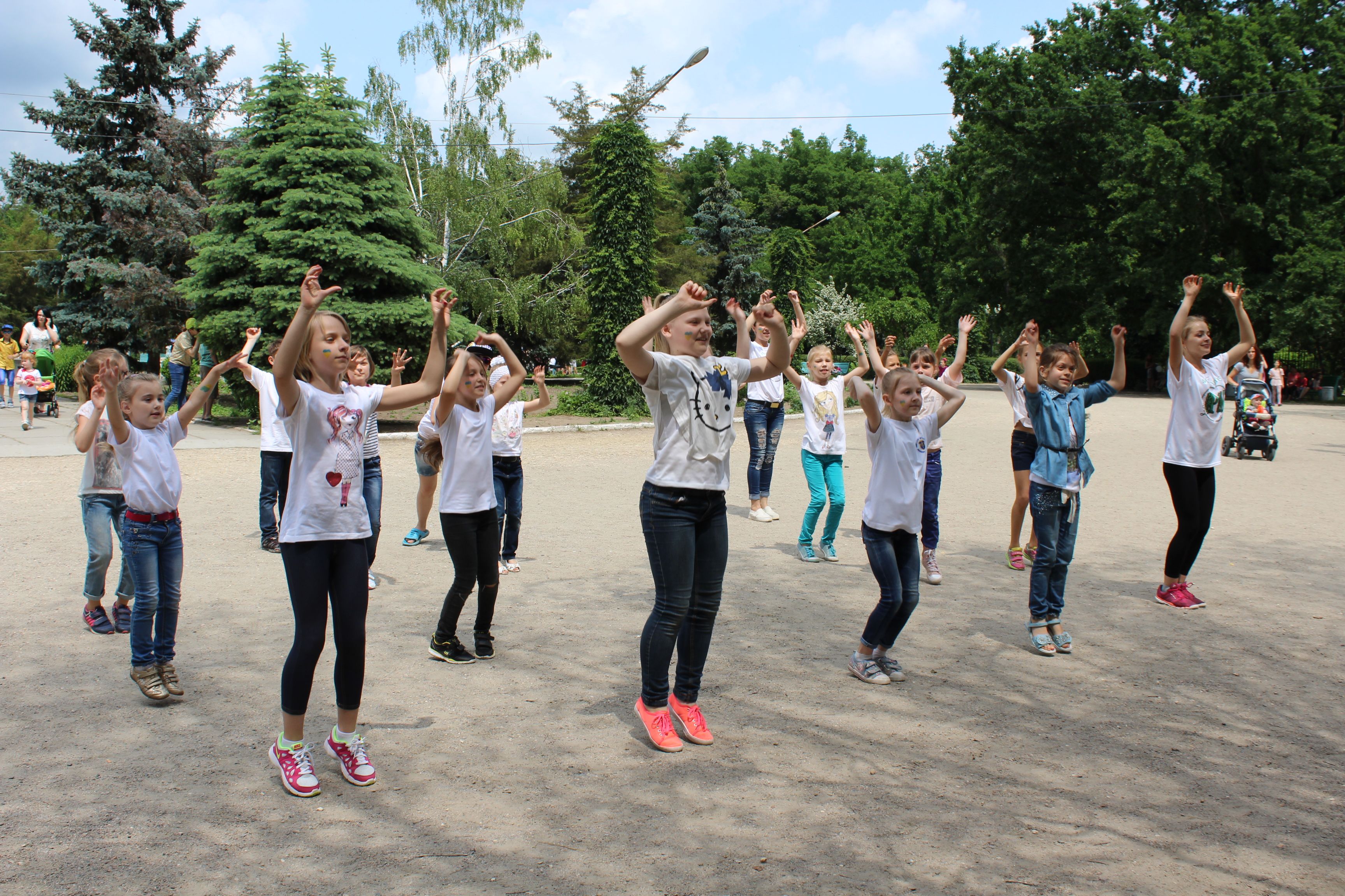 Флешмоб стал подарком от организации в День защиты детей. Группа маленьких помощников разных возрастов исполнила танец из несложных, но зажигательных движений под не менее зажигательную музыку. Собравшиеся с интересом наблюдали за действом, развернувшимся возле фонтана. Затем участники флешмоба вместе с организаторами мероприятия раздали другим деткам в парке сладости и мороженное. Несмотря на свою юный возраст, эти ребята из церкви "Новое поколение" уже являются волонтерами. Самим создать что-то масштабное им не позволяет возраст, но помочь в проведении мероприятий они вполне могут, что и делают.