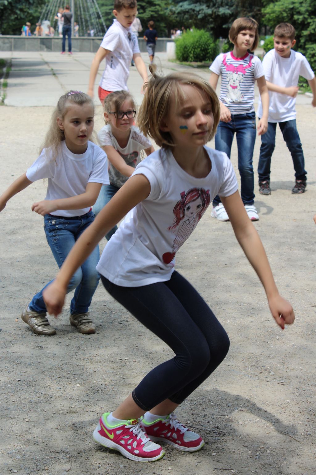 Сегодня в мелитопольском парке культуры и отдыха им. М. Горького для детей станцевали небольшой флешмоб. Его организаторами выступили члены благотворительного фонда "Развитие будущего".