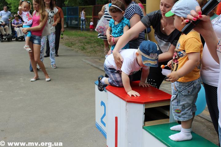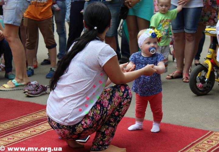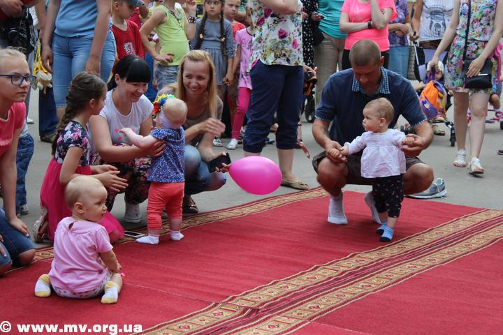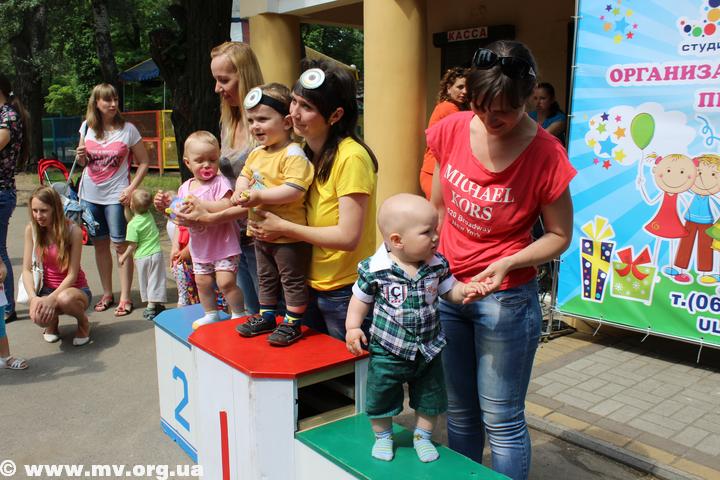 Первый забег провели для самой младшей категории участников. Самой маленькой участницей, которой только исполнилось 9 месяцев, стала Герасименко Катя, которая и стала победительницей, обогнав своих старших соперников.