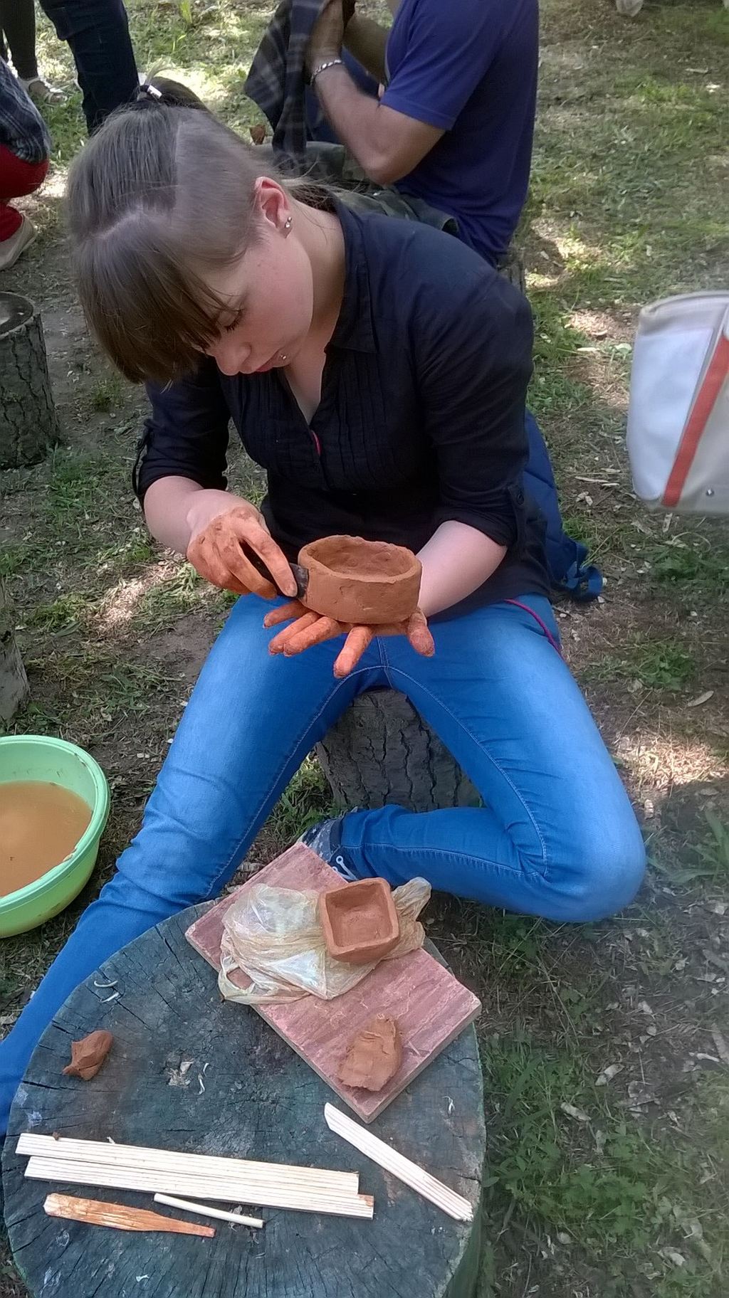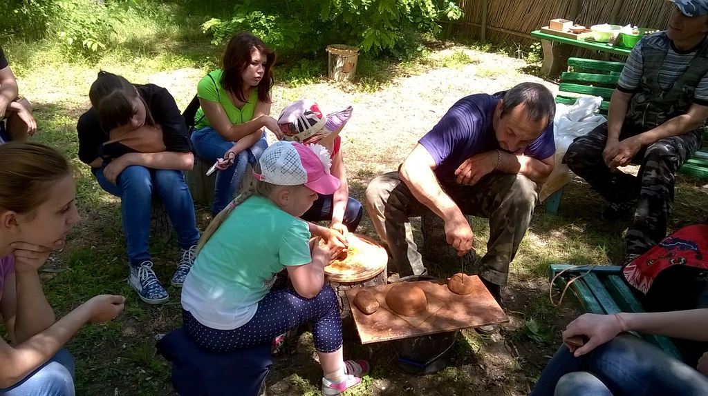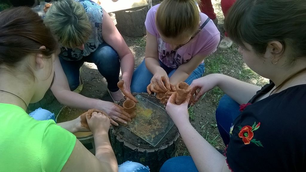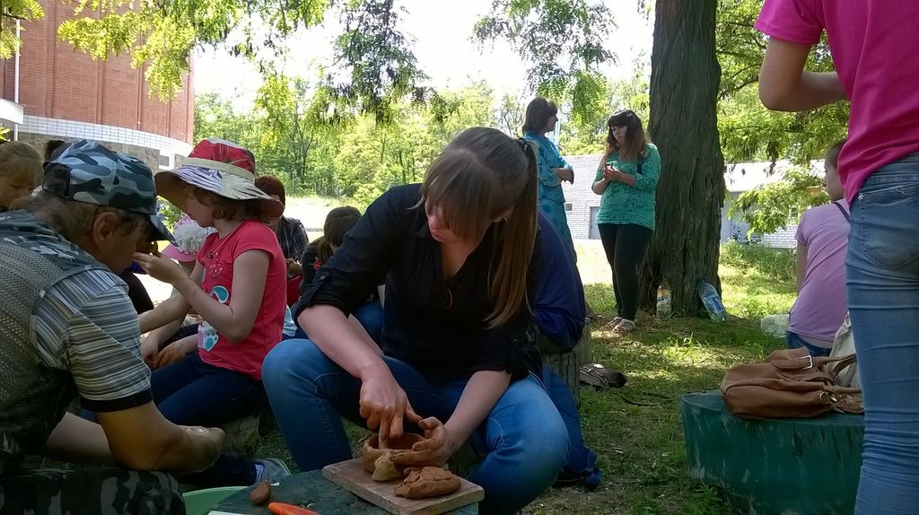 31 мая учащиеся направились на "Каменную Могилу", где заведующий отделом охраны культурного наследия заповедника Виктор Джос сначала рассказал о древних способах изготовления нашими предками глиняной посуды. Затем приступил к практике - провел интересный мастер-класс по лепке посуды из самого распространенного природного сырья - обыкновенной глины. Ребята поучаствовали в увлекательном процессе превращения глины со склонов Каменной Могилы в тарелки, чашки и даже игрушки и украшения. Особое внимание В. Джос сосредоточил на историческом аспекте этого ремесла и на значении символических рисунков на посуде, которые наносили древние люди.