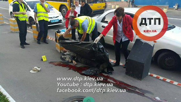 Смерть наступила мгновенно. Об этом с места происшествия передает корреспондент Segodnya.ua. Уже через 5 минут на месте скорая и полиция. По словам медиков, часть мозга у жертвы вытекла через нос.
