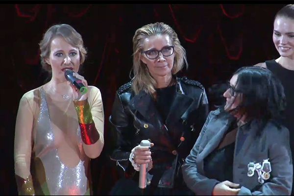В начале мероприятия подруга звезды Ника Белоцерковская крикнула из зала, что ведущая ждет ребенка. Коллега Ксении по церемонии произнес: "А Собчак беременна. Питерская публика очень наблюдательна".