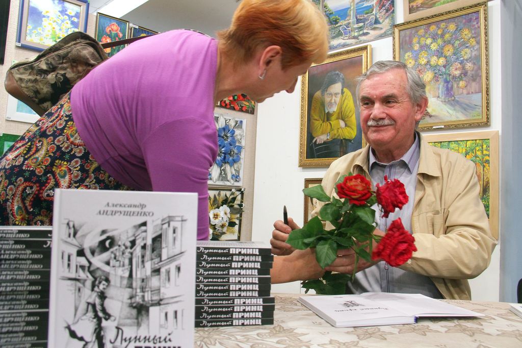 9 июня в галерее "Арт-Хаус" состоялась презентация сборника стихов и прозы Александра Андрущенко "Лунный принц". "На 69-м году жизни у меня родилась первая книга", - улыбается Александр Анисимович. С почином!