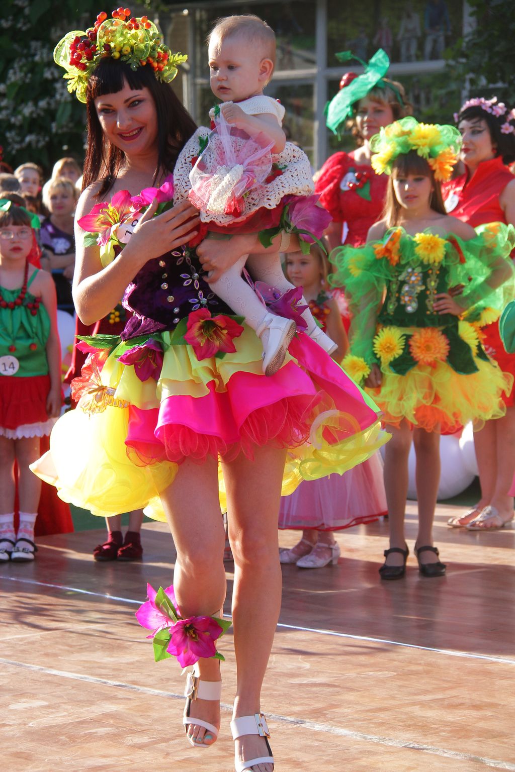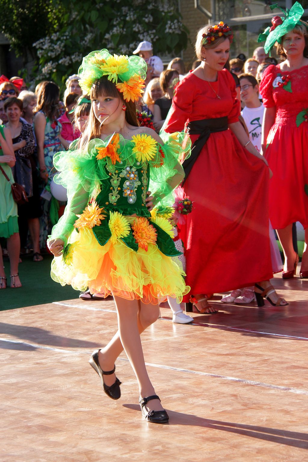 А претендентками на титулы "Принцесса-черешня-2016" и "Черешневая королева-2016" стали 23 красавицы в возрасте от годика до прекрасных дам. Их костюмы просто не поддаются описанию: с юбками в пол и мини, с декольте и разрезами, пышные и облегающие, с веночками, шляпками, зонтиками и сумочками. Настоящие мастерицы придумывали, создавали эти наряды. Посоветовавшись, жюри вынесло вердикт: диплом победительницы, титул "Черешневая принцесса" и авторское панно присуждены 7-летней Дашеньке Ивлевой. Как признались члены жюри, она покорила их сердца своими танцевальными па и акробатическими кульбитами. Очень радовалась успеху дочери мама Светлана, которая тоже была участницей этого конкурса, но в старшей возрастной категории. Позже мы узнали, что воспитатель 47 детсада С. Ивлева со своей дочкой Дашей уже третий год подряд принимают участие в конкурсе "Черешня от кутюр". "В прошлом году я сшила себе пышное красное плате и была королевой-черешней. А в этом году я сконцентрировалась на создании костюма для дочери: придумала образ цветущей черешни, сшила платье. Ободочек сделала моя коллега, настоящий мастер-золотые руки Инноват Изматовна. Проходку помогла подготовить руководитель ансамбля танца "Карамель" Татьяна Католик, за что мы ей очень благодарны. Я просто чувствовала, что в этом году мы обязательно победим!", - рассказала мама маленькой "Принцессы-черешни".