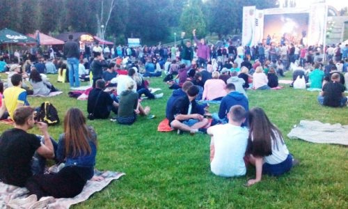 На открытие пришли более 200 человек. Многие пришли с ковриками и расположились на зеленых зонах и размахивали флажками Украины, на которых было написано «Вболіваємо за Україну».