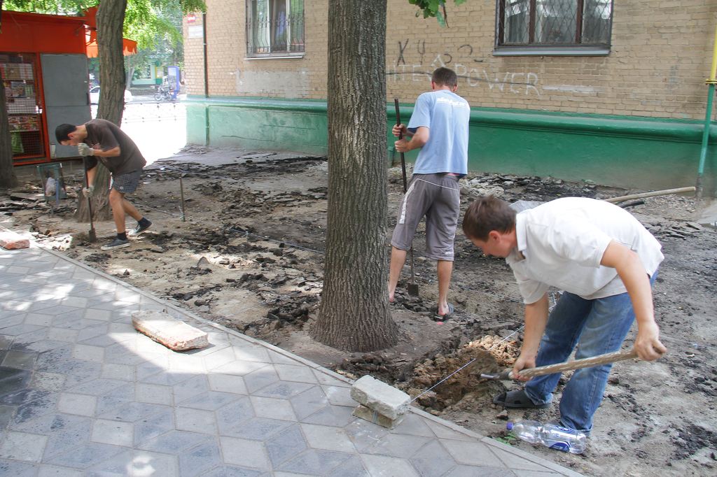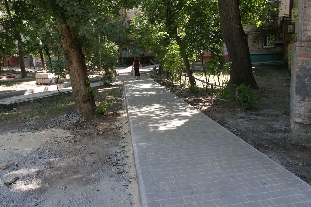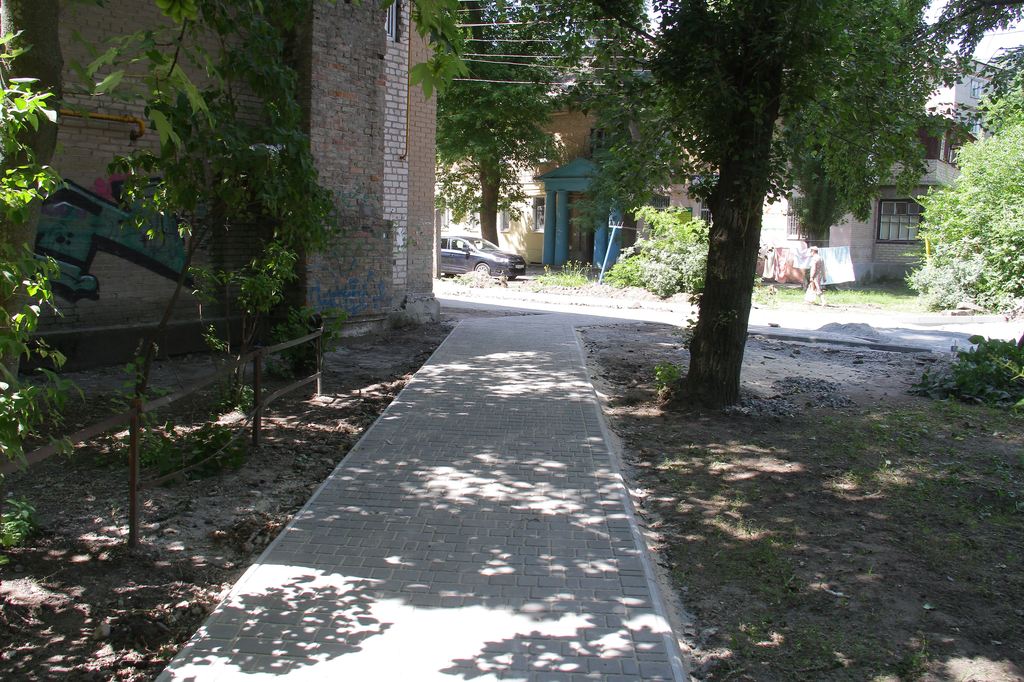 Начат капитальный ремонт тротуаров и внутридворовых проездов во дворе домов №№ 30, 32, 34, 36 по пр. Б. Хмельницкого. На это в бюджете запланировано 1,2 миллиона.