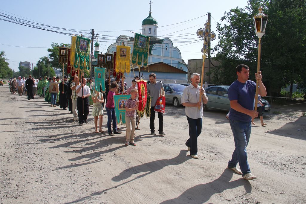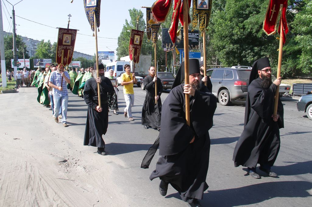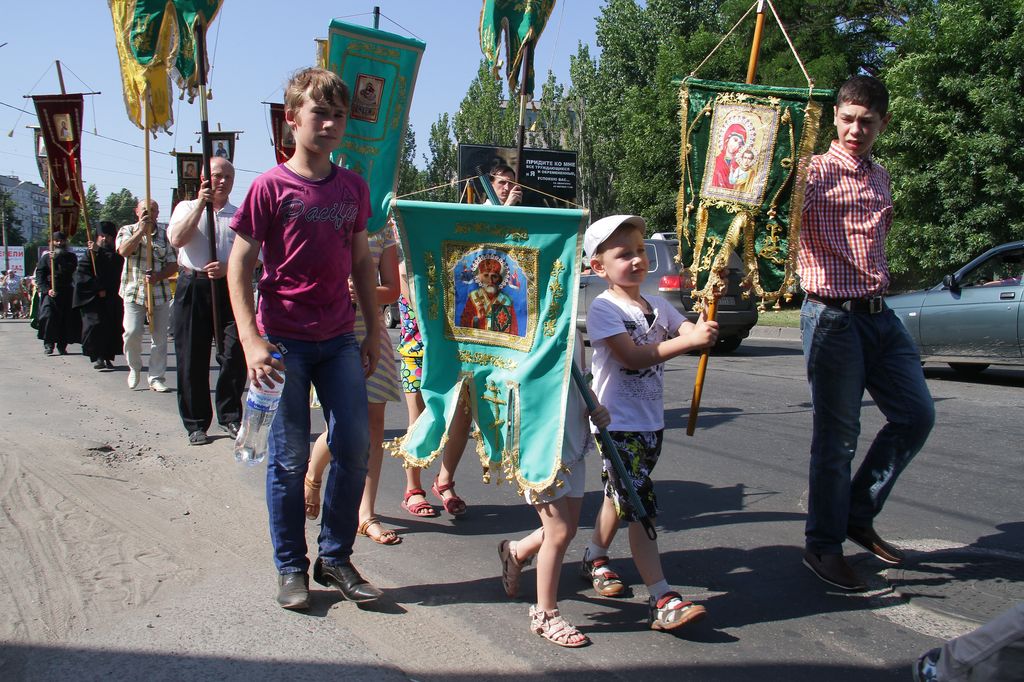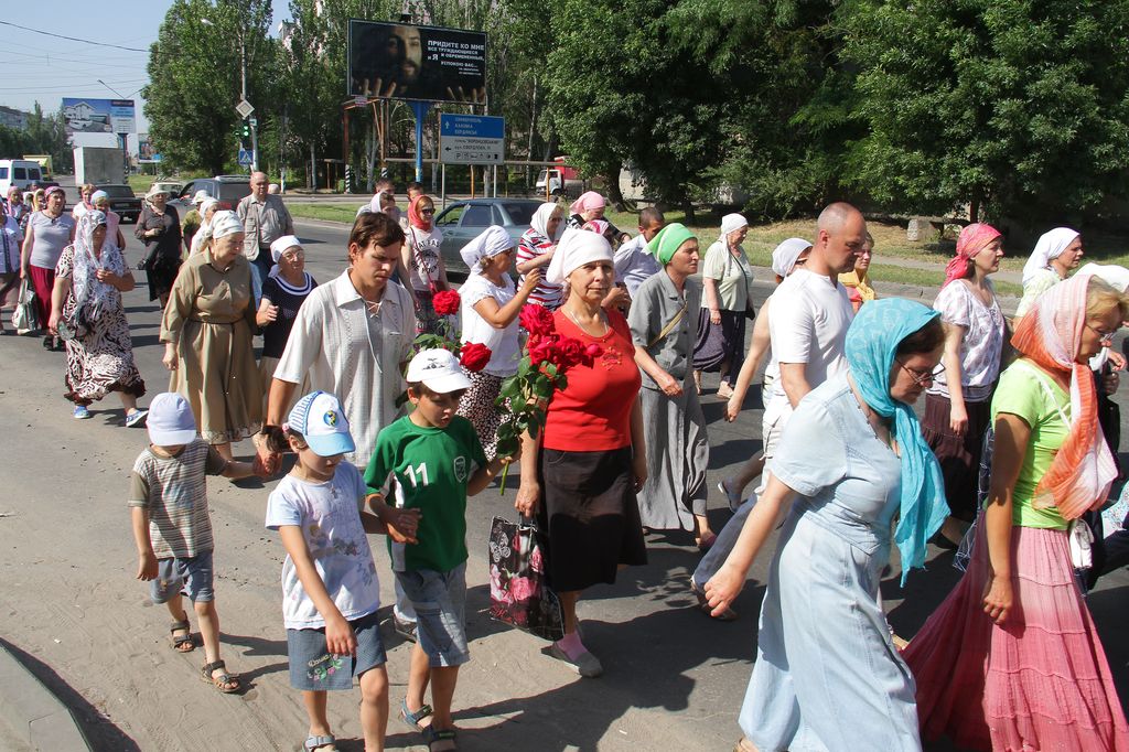 Перед Крестным ходом в храме провели службу и причастие, а затем колонной отправились в шествие. Впереди колонны шли мужчины с крестами и горящей свечой, за ними шагало несколько совсем еще маленьких детей, потом следовали церковнослужители в торжественном облачении, а замыкали шествие прихожане разных возрастов с иконами в руках, многие взяли с собой детей. В начале и в конце колонну, шествующую по проезжей части, сопровождали представители полиции. Крестный ход сопровождался молитвенными песнопениями.