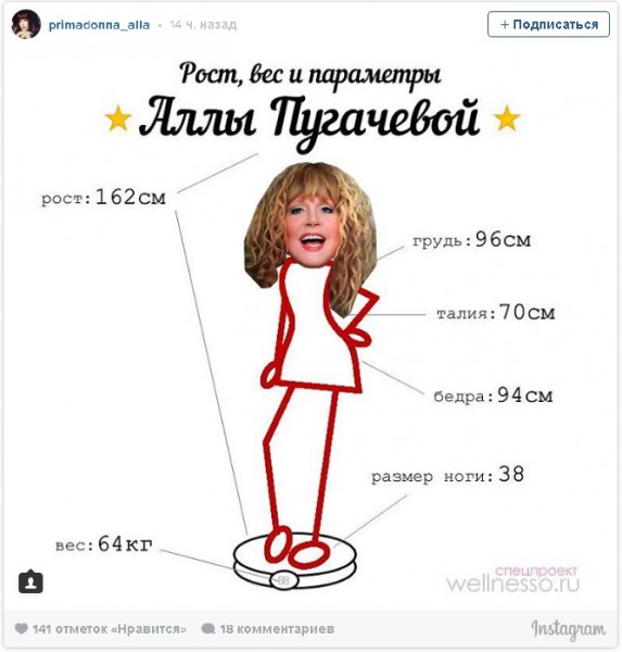 В интернете опубликовали реальные параметры фигуры Примадонны. Эту информацию выложили в Instagram поклонники Пугачевой. За изменениями во внешности Аллы Борисовны не устают следить ни журналисты, ни фанаты. Ее недавнее похудение просто взбудоражило всех неравнодушных. Выяснилось, что объемы Примадонны все больше стандартных 90-60-90, однако ушли недалеко от них.