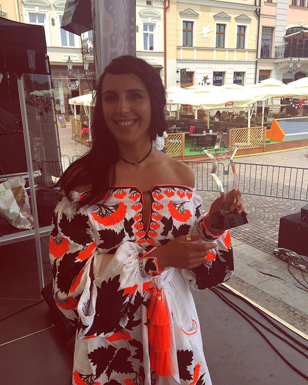 Победительница "Евровидения-2016" выбрала платье в украинском стиле с оригинальным узором гроздей калины от Юлии Магдыч для недавнего выступления в польском городе Жешув, где удостоилась награды OGAE (некоммерческая организация, которая объединяет фанатов конкурса Евровидение более 40 стран).