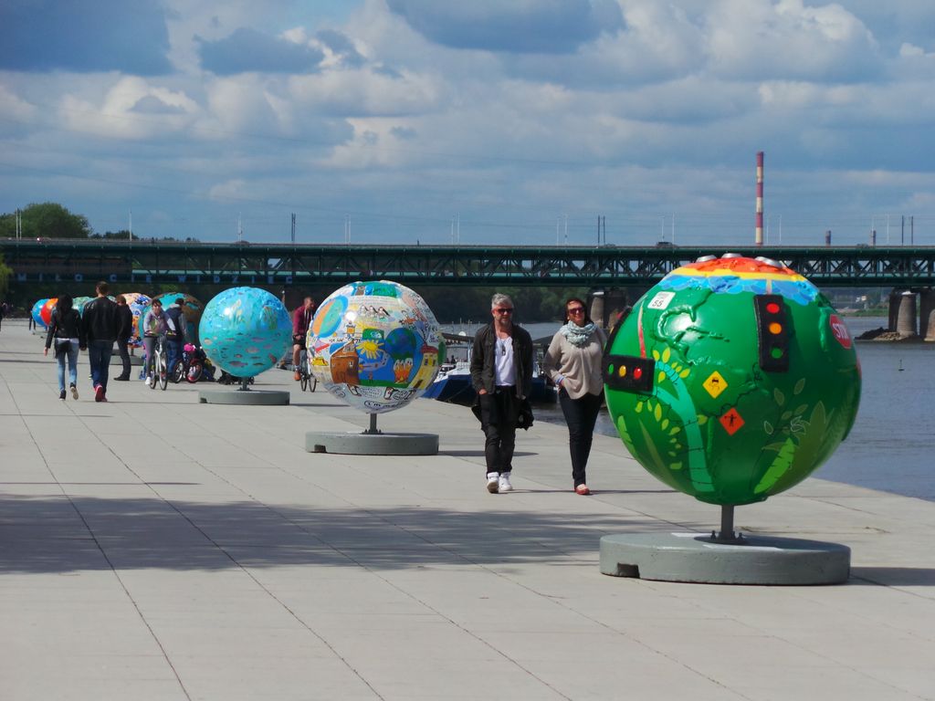 Как и положено столице, здесь кипит жизнь. Мы были в Варшаве в мае. На набережной проходила выставка экопроекта Cool Globe - декорированных больших глобусов. Каждый артобъект этой выставки доносит до зрителей факты, которые помогут им стать более «зелеными», то есть больше заботиться об экологии. Например, о том, что тропические леса это древнейшая экосистема на земле, которая меньше всего изменилась за тысячи лет.