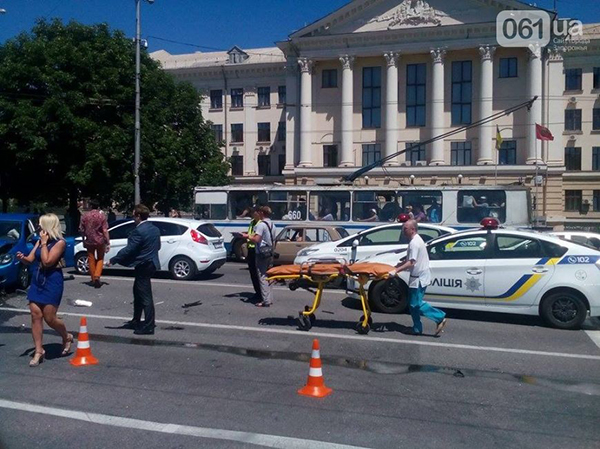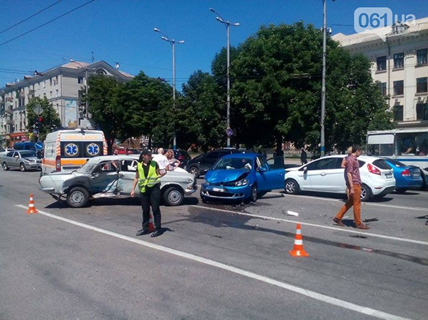 Сегодня днем напротив запорожской мэрии (бульвар Шевченко) произошла серьезная авария - столкнулись четыре легковушки. Об этом с места происшествия сообщает корреспондент 061.