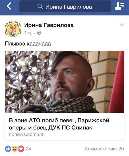 По данным СМИ, Гаврилова на своей странице в Facebook язвительно прокомментировала новость о гибели Слипака. Эта запись вызвала широкий общественный резонанс, после чего пользователи социальных сетей, в том числе и депутаты Верховной Рады, призвали дать правовую оценку действиям Гавриловой.
