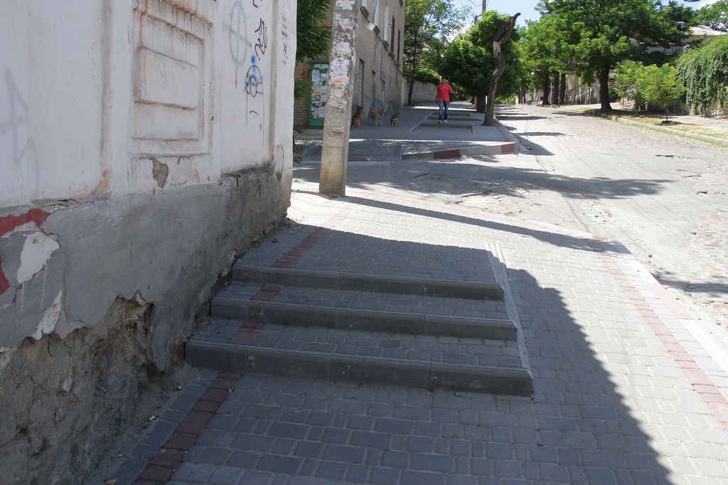 Напомним, проектная стоимость реконструкции тротуара по ул. Университетская составляет 1,2 млн. грн. Однако представители городской власти обещали, что подрядчик сумеет " вложиться" в 650-750 тыс. грн. Это дешевле, чем подобные работы (правда, без лестниц и перил) по реконструкции тротуарной плиткой внутридворового проезда по ул. Шмидта, 40.