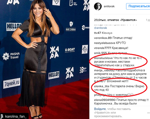 Так, Лорак отдала предпочтение откровенному наряду, оголяющему живот. Последний, к слову, немного смутил подписчиков певицы: «Что с животом?». Более того, не совсем удачный свет и чрезмерный загар сыграли с Ани злую шутку: некоторые поклонники отметили, что Лорак сильно постарела и выглядит на 40.