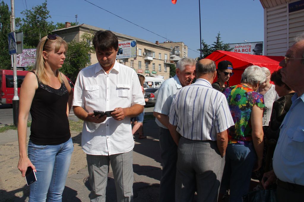 К людям вышел директор предприятия Сергей Васюренко. Он объяснил, что на поверку счетчика в новом тарифе заложено 40 копеек. При этом предприятие уже приобрело мобильную проливную станцию для поверки счетчиков на дому стоимостью 40 тыс. грн. Кроме того, для оказания этой услуги будет нанято еще три специалиста. В основном же, повышение тарифа, утвержденное НКРЭКУ, связано с ростом цен на электроэнергию и прекращением дотаций со стороны государства.