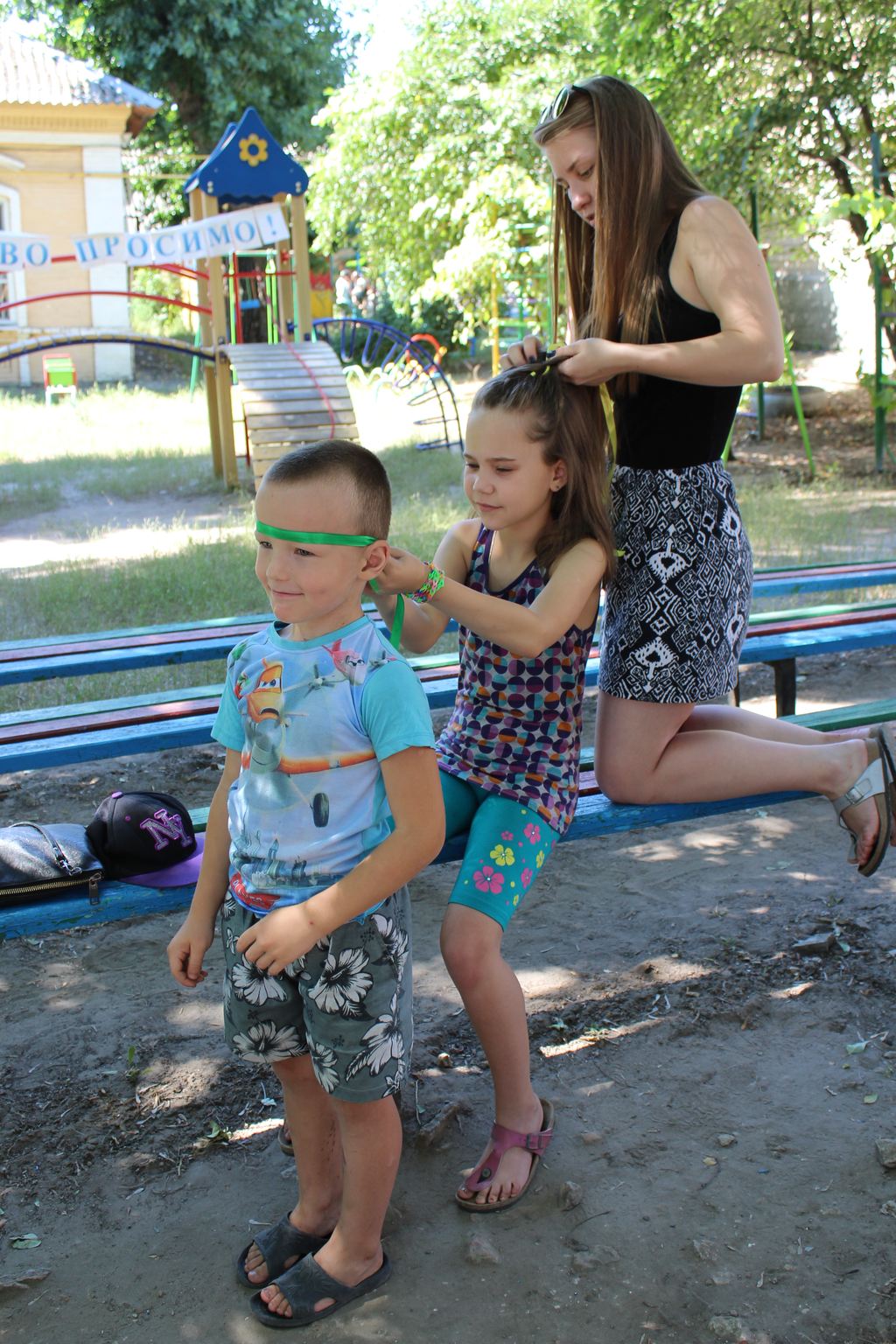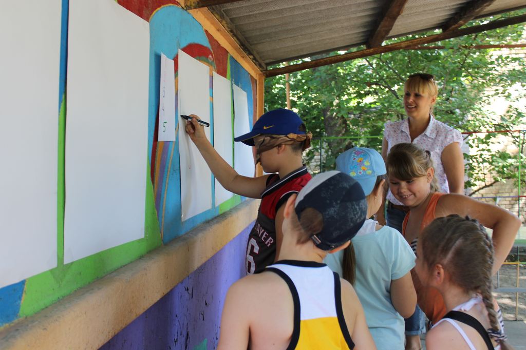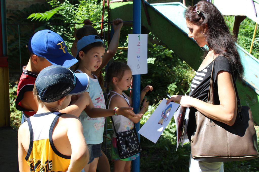 Они подготовили необычный и интересный квест по профессиям для детворы. Пять команд воспитанников лагеря прошли по пяти станциям, где им пришлось с завязанными глазами рисовать своих вожатых, делать прически своим друзьям, отгадывать, кто из сказочных и мультяшных героев имеет какую профессию, разгадывать буквенные ребусы, поделиться, кем кто хочет быть, когда вырастет, и, так как это все же интеркультурный лагерь, разучить танец дружбы крымских татар. Ребята прекрасно справились с заданиями, а мы узнали, что многие хотят быть, как Айболит, ветеринарами, кто-то хочет быть поваром и инженером, "спецназовцем", как дядя Степа, художником, доктором, как мама, и даже Президентом. Оценки команд были практически равными, чуть-чуть своей организованностью и полными ответами отличалась команда "Позитив". В итоге победила дружба, и ребята уже все вместе станцевали выученный крымскотатарский танец.