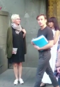 На видео запечатлено, как он в компании брюнетки в белом наряде посещает выставку Льва Бакста. Парочка внимательно слушает индивидуального экскурсовода и любуется картинами. После мероприятия они отправились пешком в направлении ресторана.