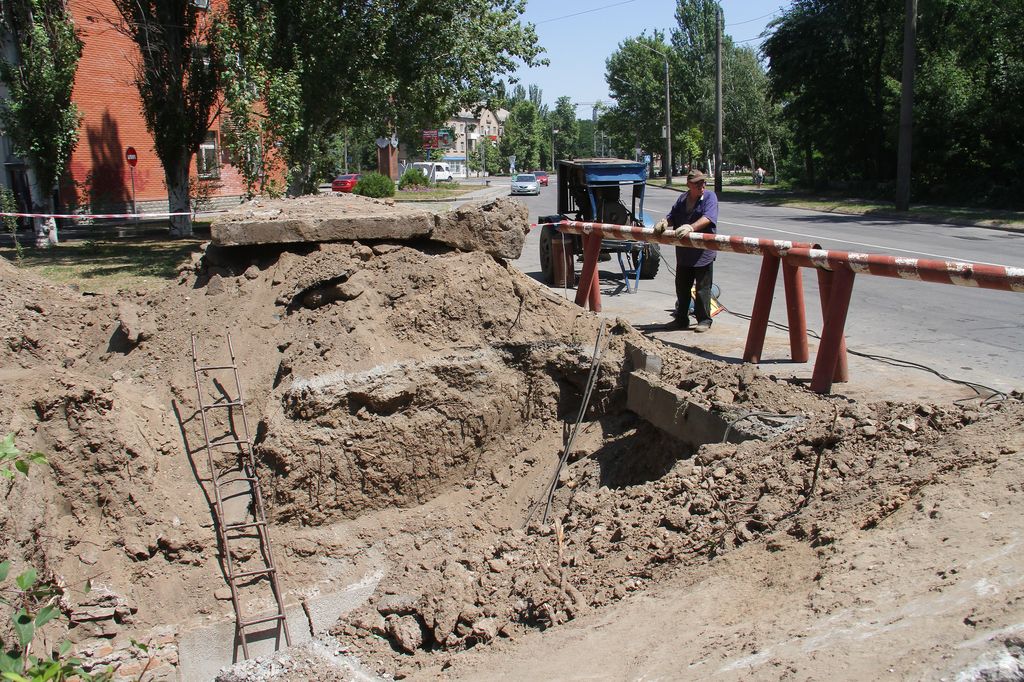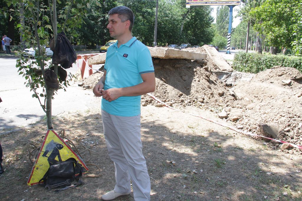 Он показал журналистам один из объектов, где сейчас идут работы. Это разрытие на ул. И. Алексеева (Крупской), в районе Пенсионного фонда, где, как "МВ" сообщали ранее, после гидравлических испытаний произошел порыв трубы.
