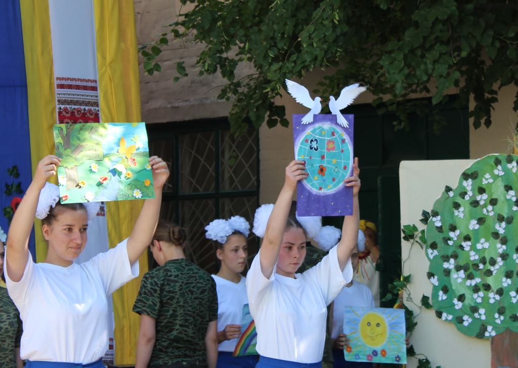 Отдельная часть мероприятия была посвящена сегодняшней ситуации на Украине. О войне было сказано несколько слов, погибших почтили минутой молчания. Затем воспитанницы исполнили символический танец, посвященный этому. "Я хочу жить без войны" – такими были главные слова песни, под которую был исполнен танец. Под конец выступления воспитанницы, занимающиеся рисованием, вынесли на обозрение присутствующих свои рисунки. Картины показывали, какой девушки видят мирную жизнь: улыбающиеся дети, неразрушенные дома под голубым солнечным небом, голубь мира над планетой.