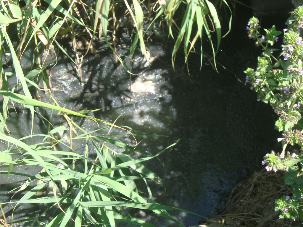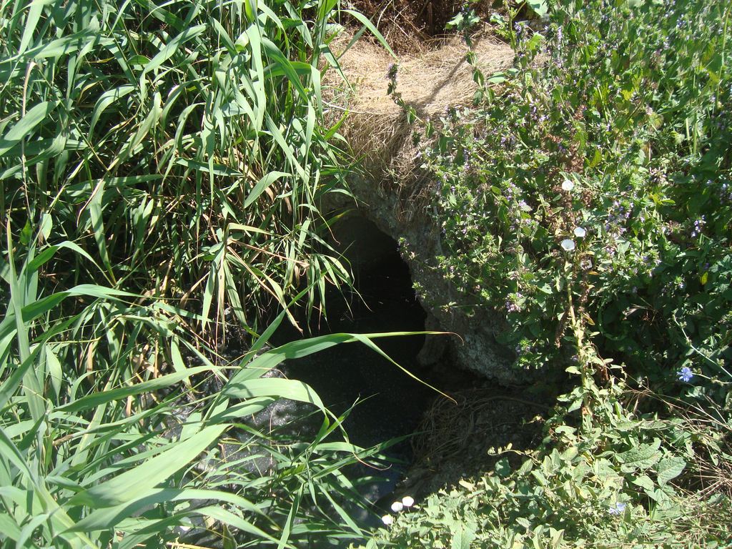 Подъехав к «Софии», которая находится совсем рядом с центральным пляжем Кирилловки, Николай Борис показал нам место, где проходит ливневая канализация, в которую, по его мнению, эта база врезала свою трубу и сливает стоки. Труба ведет к Молочному лиману. Когда автор сих строк нагнулся, чтобы сделать пару снимков, то почувствовал сильный смрад похожий на тот, что идет из забитого канализационного люка.